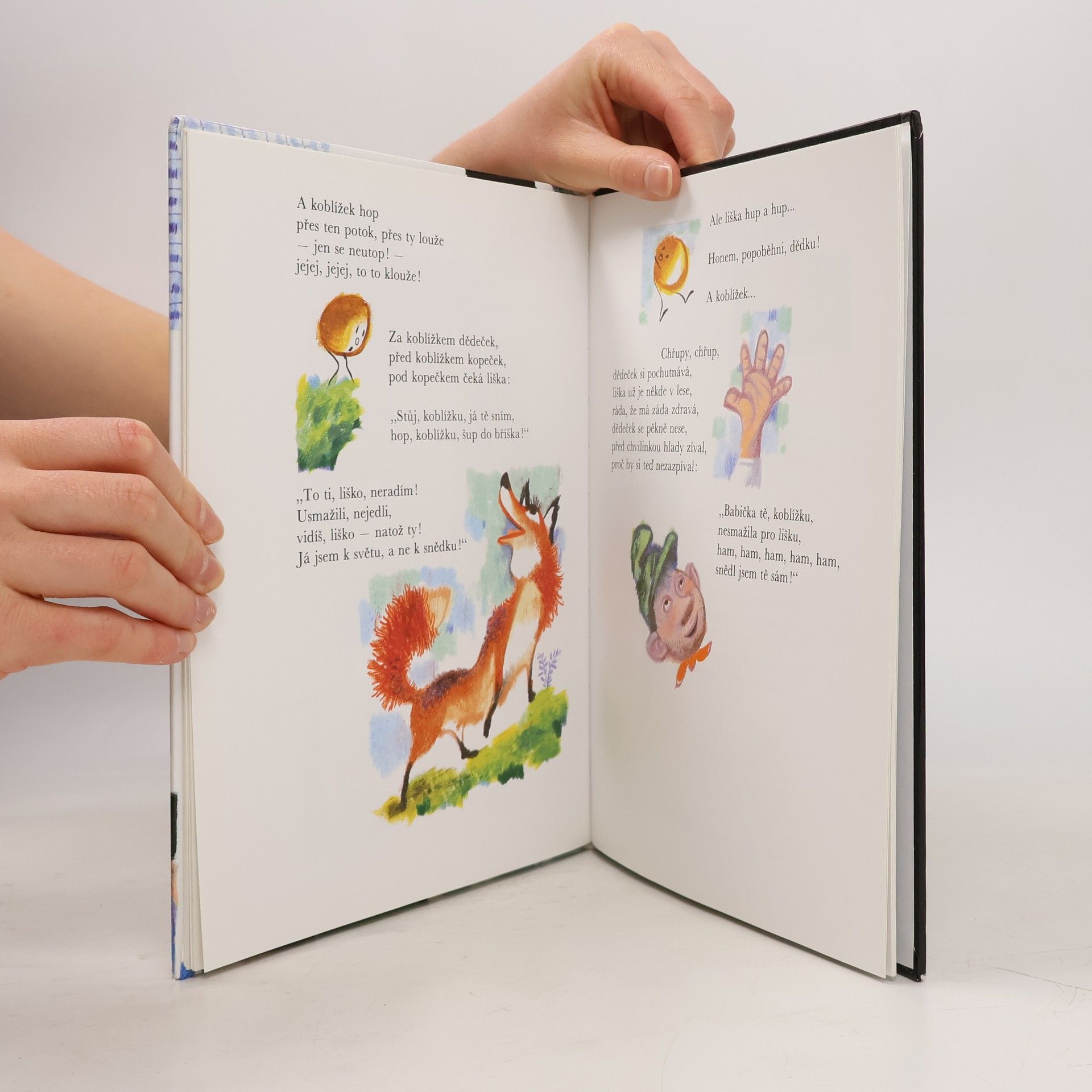Známé pohádky přebásnil nádherným jazykem František Hrubín a vznikla půvabná knížka pro nejmenší děti. V hravých a dobře zapamatovatelných verších se děti skamarádí s Červenou karkulkou, Budulínkem, Otesánkem, Palečkem i Smolíčkem, ochutnají Perníkovou chaloupku, Dědečkův koblížek i Velikou řepu, proběhnou se s kuřátkem v obilí a se zvířátky v začarovaném lese. Půvabná a nestárnoucí knížka, po níž je stále sháňka, je vhodná k předčítání i pro první samostatné čtení.