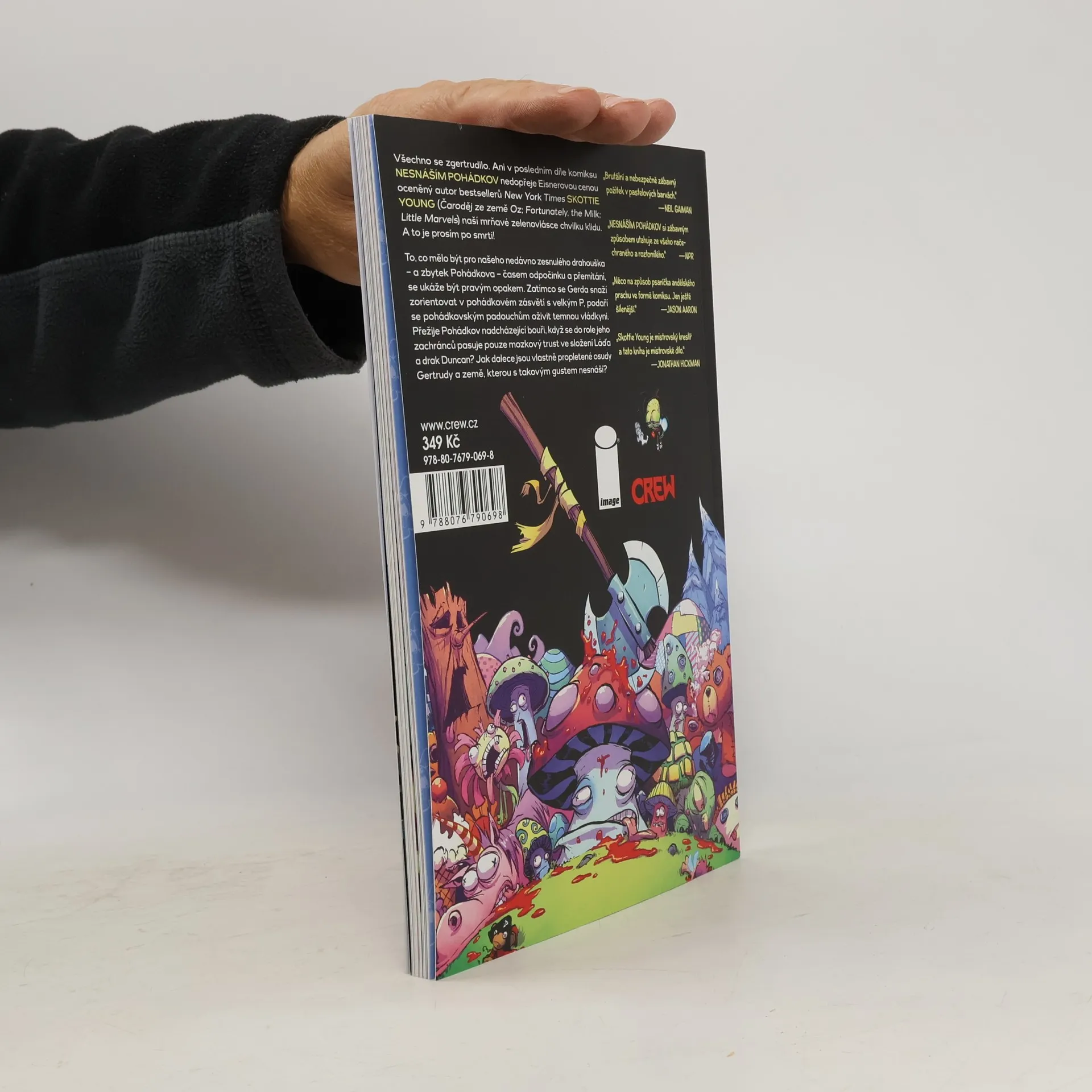 Všechno se zgertrudilo. Ani v dalším pokračování komiksu NESNÁŠÍM POHÁDKOV nedopřeje Eisnerovou cenou oceněný autor bestsellerů New York Times SKOTTIE YOUNG (Čaroděj ze země Oz; Fortunately, the Milk; Little Marvels) naší mrňavé zelenovlásce chvilku klidu. A to je prosím po smrti! To, co mělo být pro našeho nedávno zesnulého drahouška – a zbytek Pohádkova – časem odpočinku a přemítání, se ukáže být pravým opakem. Zatímco se Gerda snaží zorientovat v pohádkovém zásvětí s velkým P, podaří se pohádkovským padouchům oživit temnou vládkyni. Přežije Pohádkov nadcházející bouři, když se do role jeho zachránců pasuje pouze mozkový trust ve složení Láďa a drak Duncan? Jak dalece jsou vlastně propletené osudy Gertrudy a země, kterou s takovým gustem nesnáší?