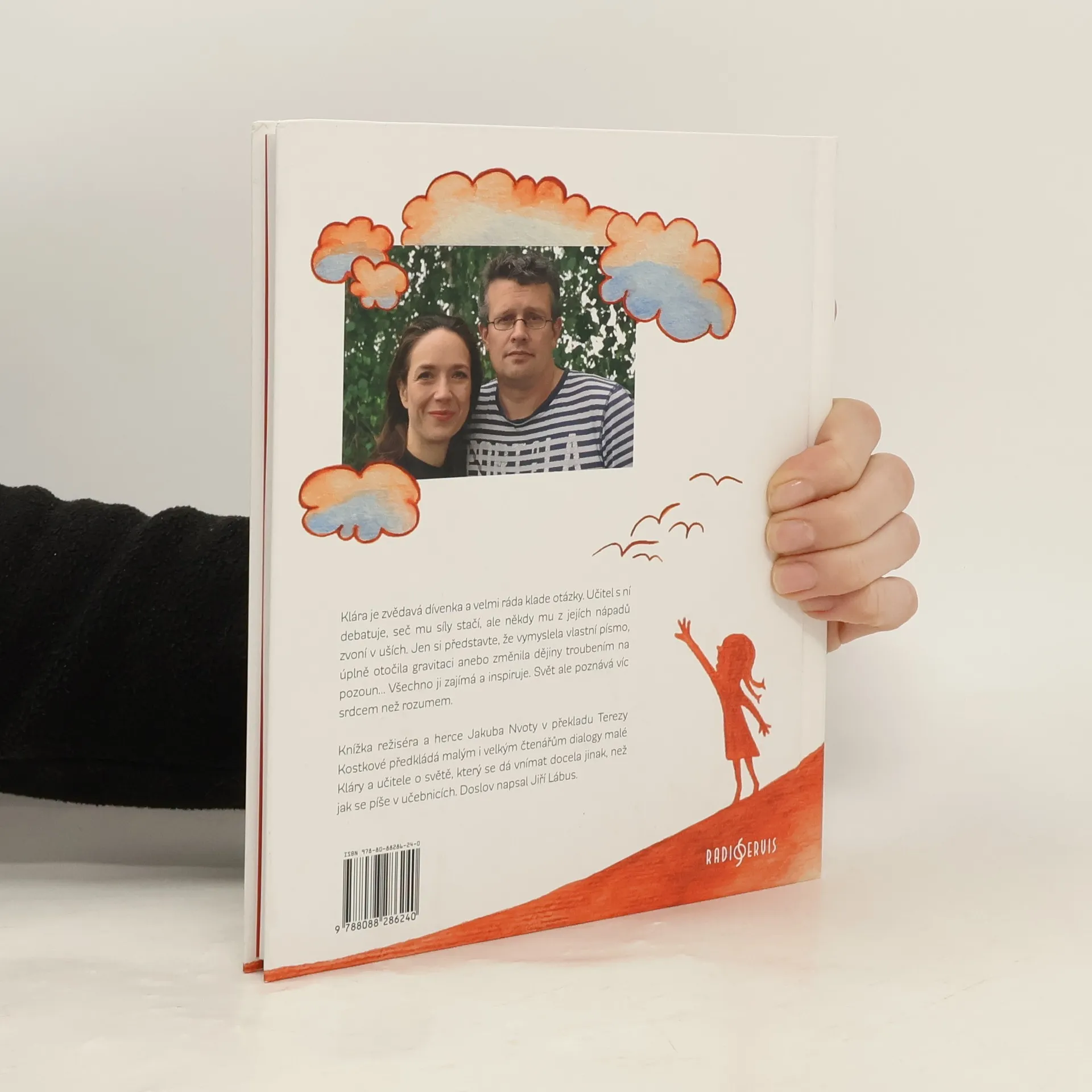Klára je zvědavá dívenka a velmi ráda klade otázky. Učitel s ní debatuje, seč mu síly stačí, ale někdy mu z jejích nápadů zvoní v uších. Jen si představte, že vymyslela vlastní písmo, úplně otočila gravitaci anebo změnila dějiny troubením na pozoun… Všechno ji zajímá a inspiruje. Svět ale poznává víc srdcem než rozumem. Knížka režiséra a herce Jakuba Nvoty v překladu Terezy Kostkové předkládá malým i velkým čtenářům dialogy malé Kláry a učitele o světě, který se dá vnímat docela jinak, než jak se píše v učebnicích. Doslov napsal Jiří Lábus.