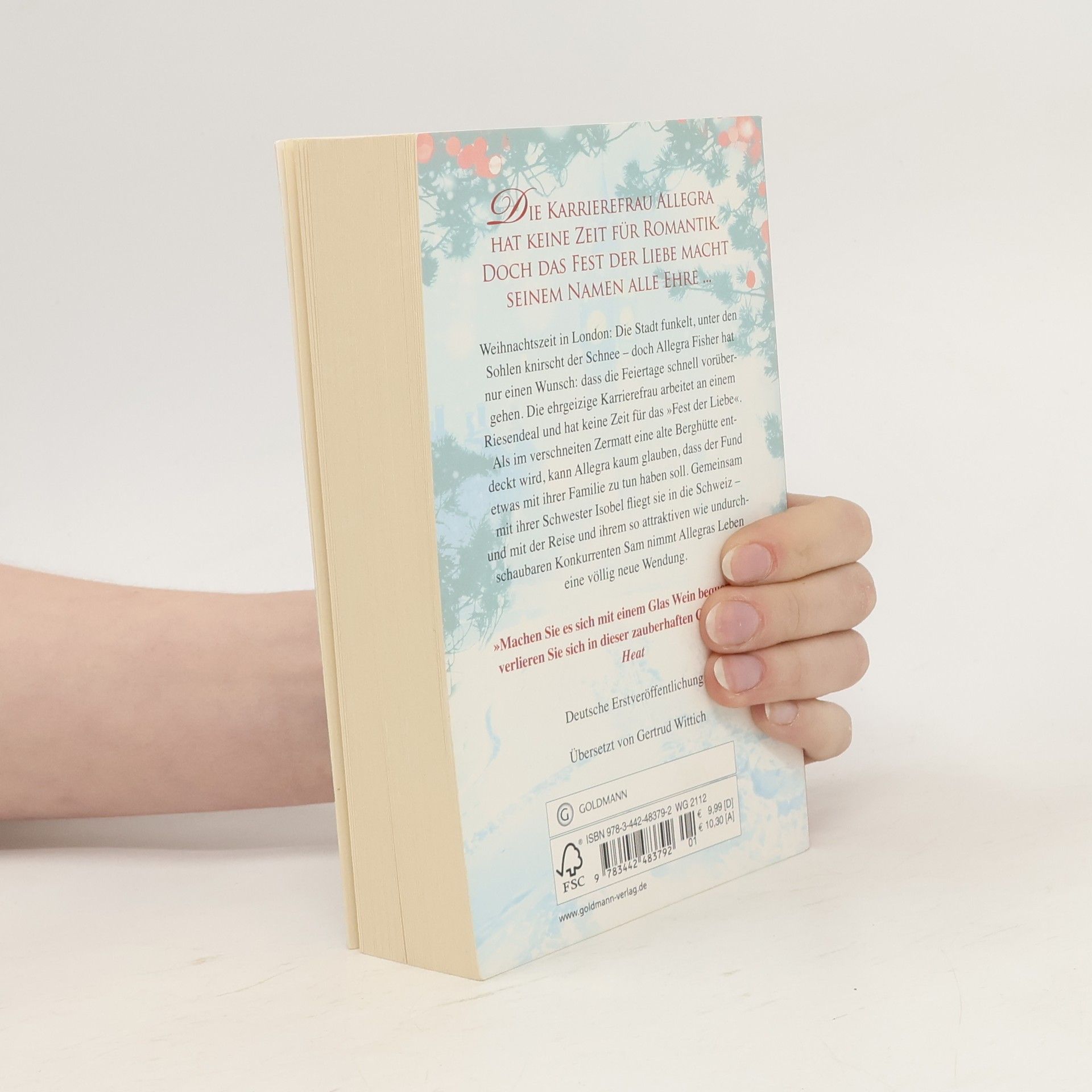 Karrierefrau Allegra hat keine Zeit für Romantik. Doch das Fest der Liebe macht seinem Namen alle Ehre ... Weihnachtszeit in London: Die Stadt funkelt, unter den Sohlen knirscht der Schnee – doch Allegra Fisher hat nur einen Wunsch: dass die Feiertage schnell vorübergehen. Die Karrierefrau arbeitet an einem Riesendeal und hat keine Zeit für das »Fest der Liebe«. Als im verschneiten Zermatt eine alte Berghütte entdeckt wird, kann Allegra kaum glauben, dass der Fund etwas mit ihrer Familie zu tun haben soll. Gemeinsam mit ihrer Schwester Isobel fliegt sie in die Schweiz – und mit der Reise und ihrem attraktiven Konkurrenten Sam nimmt Allegras Leben eine neue Wendung. Vielleicht wird es doch ein Fest der Liebe ...
