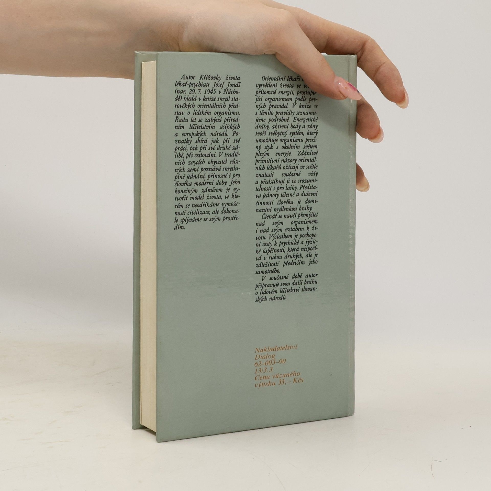 Autor Křížovky života lékař-psychiatr Josef Jonáš (nar. 29. 7. 1945 v Náchodě) hledá v knize smysl starověkých orientálních představ o lidském organismu. Řadu let se zabývá přírodním léčitelstvím asijských a evropských národů. Poznatky sbírá jak při své práci, tak při své druhé zálibě, při cestování. V tradičních zvycích obyvatel různých zemí poznává smysluplné jednání, přínosné i pro člověka moderní doby. Jeho konečným záměrem je vytvořit model života, ve kterém se neodříkáme vymožeností civilizace, ale dokonale splýváme se svým prostředím. Orientální lékaři hledali vysvětlení života ve všudypřítomné energii, prostupující organismem podle pevných pravidel. V knize se s těmito pravidly seznamujeme podrobně. Energetické dráhy, aktivní body a zóny tvoří svébytný systém, který umožňuje organismu pružný styk s okolním světem plným energie. Zdánlivě primitivní názory orientálních lékařů ožívají ve světle znalostí současné vědy a předstihují ji ve srozumitelnosti i pro laiky. Představa jednoty tělesné a duševní činnosti člověka je dominantní myšlenkou knihy. Čtenář se naučí přemýšlet nad svým organismem i nad svým vztahem k životu. Výsledkem je pochopení cesty k psychické a fyzické úspěšnosti, která nespočívá v rukou druhých, ale je záležitostí především jeho samotného. V současné době autor připravuje svou další knihu o lidovém léčitelství slovanských národů.