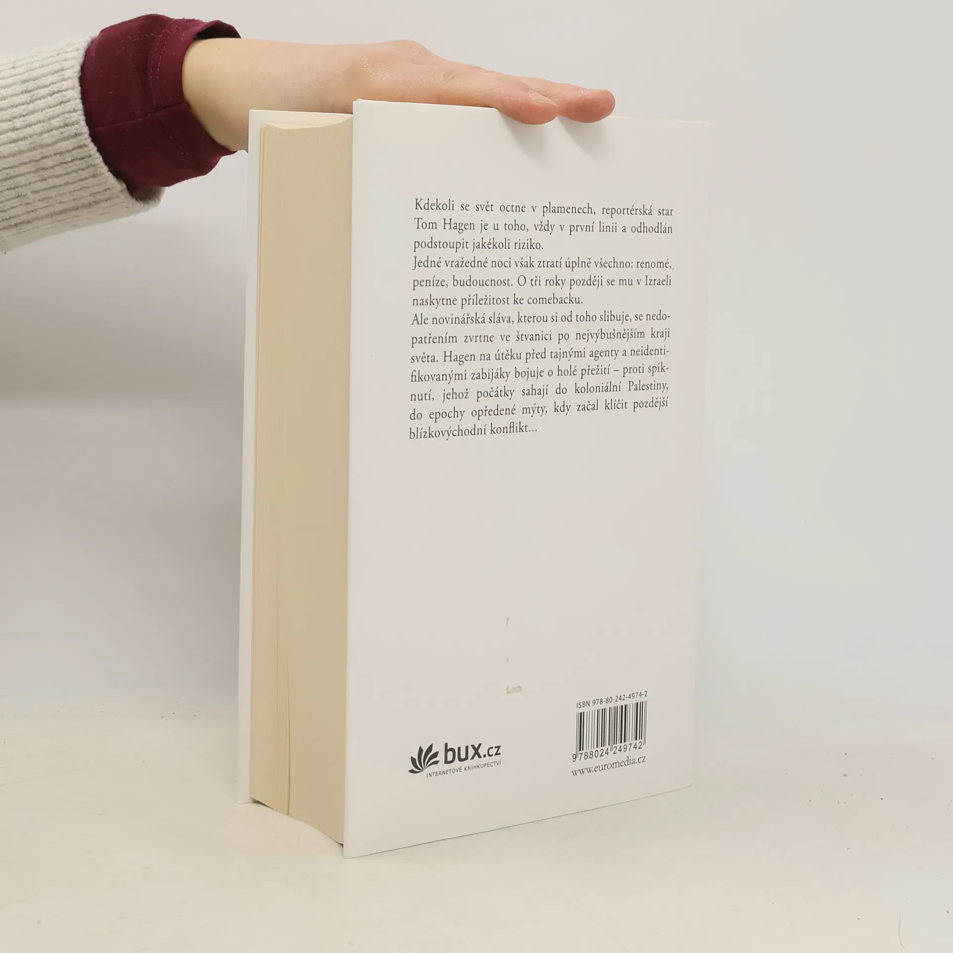 Tom Hagen, reportérská hvězda mezi válečnými zpravodaji, je vždy v první linii a odhodlán podstoupit jakékoli riziko. Specializuje se na země Blízkého východu a referuje odtud přímo z pekla. Jenže v Afghánistánu ho štěstí opustí. Jeho pověst se octne v troskách a zoufale bojuje o svůj comeback. O tři roky později se mu v Izraeli naskytne příležitost. Ale novinářská sláva, kterou si od toho slibuje, se nedopatřením zvrtne ve štvanici. Hagen na útěku před tajnými agenty a nebezpečnými zabijáky bojuje o holé přežití – proti spiknutí, jehož počátky sahají do koloniální Palestiny, kdy začal klíčit pozdější blízkovýchodní konflikt...