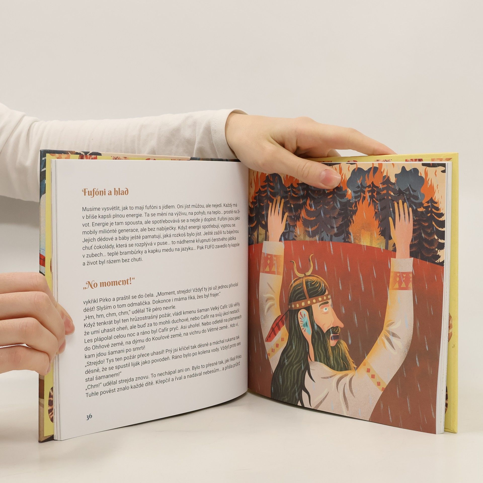 Vesmír najednou podivně škytl a z jiné planety sem spadlo deset padouchů. Spadli rovnou do pravěku, kde nikdo neznal mobil ani internet. Zločinci byli na jinou planetu posláni za trest a byli malí jako trpaslíci a vysušení jako mumie. Ten nejhorší z nich ukradl lidem oheň. Lidský kluk jménem Pírko a jeho kamarádka Sojka putovali temným lesem, aby zachránili svůj kmen. Kmen se jmenoval Strakaté uši a jeho šaman… a všechno další se v té knížce dočtete.