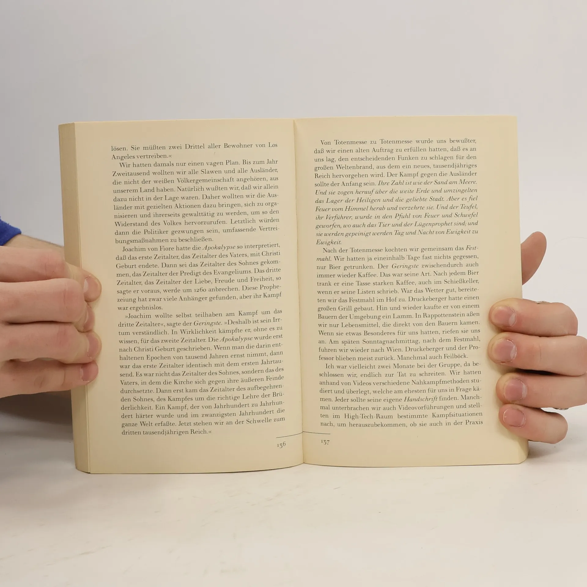Die Gäste des Wiener Opernballs werden zum Ziel eines Terroranschlags. Ein Fernsehjournalist, der die Live-Übertragung aus den Ballsälen koordinieren soll, beobachtet das Verbrechen auf den Monitoren. Sein eigener Sohn ist unter die Opfern. Die Kameras laufen weiter und senden weltweit auf zahllose Bildschirme das Sterben von Tausenden. Der TV-Journalist versucht, von Trauer um seinen Sohn getrieben, die Hintergründe des Anschlags zu klären. Sie sind verworren, von Schlamperei und Zufällen geprägt. Mindestens so verworren wie das Weltbild jener kleinen Gruppe, die das Morden vorbereitete. Josef Haslingers spannender Medienroman und Politthriller entwirft das Panorama einer vom Terrorismus bedrohten Wohlstandsgesellschaft. Er zeigt die grotesken politischen Widersprüche auf zwischen Liberalität und Bedürfnis nach Sicherheit; den kaum kontrollierbaren Einfluß des Fernsehens auf Alltagsleben und Regierungsentscheidungen sowie das fatale Zusammenwirken von wiederaufflammendem Nationalismus, Fremdenfurcht und politisch motivierter Gewalt.