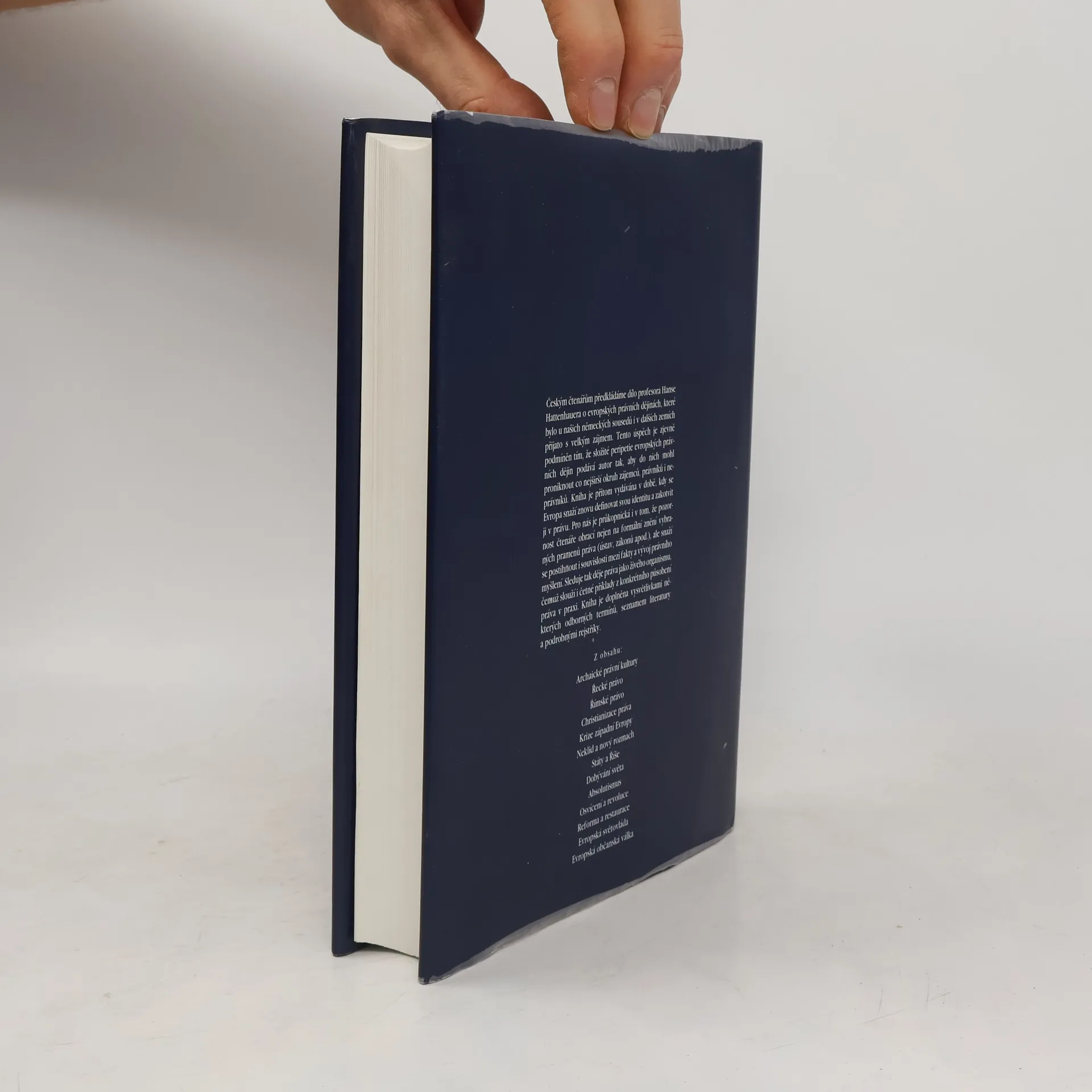 Toto úspěšné dílo sleduje tři tisíce let trvající vývoj právní kultury v Evropě. Kniha je rozsáhlým překladem díla profesora Hattenhauera, známého německého právního historika. Autor se neomezuje na pouhý historický přehled pramenů práva, ale pojímá právní dějiny jako skutečné dějiny práva v celé jeho šíři. Podrobný výklad je doplněn o rejstříky a vysvětlivky.