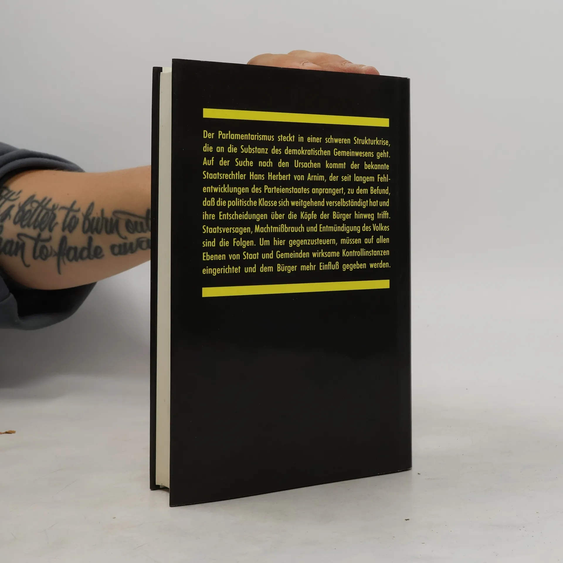 Der Parlamentarismus steckt in einer schweren Strukturkrise, die an die Substanz des demokratischen Gemeinwesens geht. Auf der Suche nach den Ursachen kommt der Staatsrechtler Hans Herbert von Arnim zu dem Befund, daß die politische Klasse sich weitgehend verselbständigt hat und ihre Entscheidungen über die Köpfe der Bürger hinweg trifft. Staatsversagen, Machtmißbrauch und Entmündigung des Volkes sind die Folgen. Um hier gegenzusteuern, müssen auf allen Ebenen von Staat und Gemeinden wirksame Kontrollinstanzen eingerichtet und dem Bürger mehr Einfluß gegeben werden.