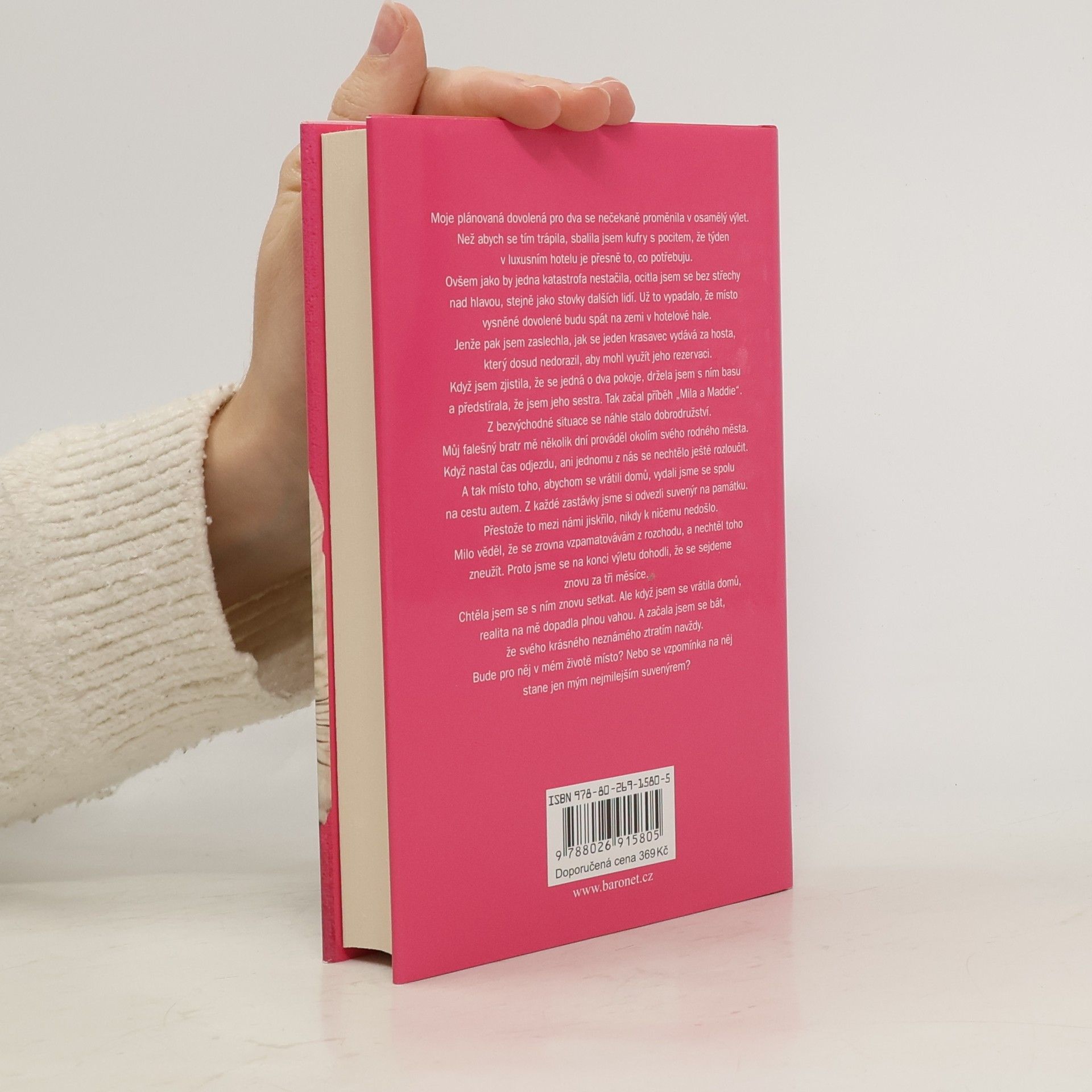 Moje plánovaná dovolená pro dva se nečekaně proměnila v osamělý výlet. Místo abych se trápila, sbalila jsem kufry s pocitem, že týden v luxusním hotelu je přesně to, co potřebuji. Ale brzy jsem se ocitla bez střechy nad hlavou, stejně jako stovky dalších lidí. Když už to vypadalo, že budu spát na zemi v hotelové hale, zaslechla jsem, jak se jeden krasavec vydává za hosta, který dosud nedorazil, aby mohl využít jeho rezervaci. Když jsem zjistila, že se jedná o dva pokoje, začala jsem se vydávat za jeho sestru. Tak začal příběh „Mila a Maddie“. Z bezvýchodné situace se stalo dobrodružství, kdy mě můj falešný bratr prováděl okolím svého rodného města. Když nastal čas odjezdu, ani jednomu z nás se nechtělo rozloučit, a tak jsme se místo návratu domů vydali na cestu autem. Z každé zastávky jsme si odvezli suvenýr na památku. I když mezi námi jiskřilo, nikdy k ničemu nedošlo, protože Milo věděl, že se vzpamatovávám z rozchodu. Na konci výletu jsme se dohodli, že se sejdeme za tři měsíce. Když jsem se vrátila domů, realita na mě dopadla plnou vahou a začala jsem se bát, že svého krásného neznámého ztratím navždy. Bude pro něj v mém životě místo, nebo se vzpomínka na něj stane jen mým nejmilejším suvenýrem?