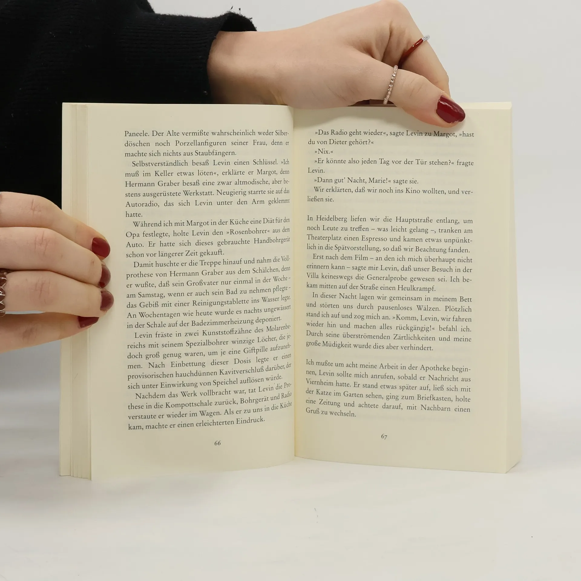 Die Apothekerin Hella Moormann liegt in der Heidelberger Frauenklinik mit Rosemarie Hirte als Bettnachbarin. Um sich die Zeit zu vertreiben, vertraut Hella der Zimmergenossin die abenteuerlichsten Geheimnisse an. Rosemarie Hirte wird zur unberechenbaren Beichtmutter.