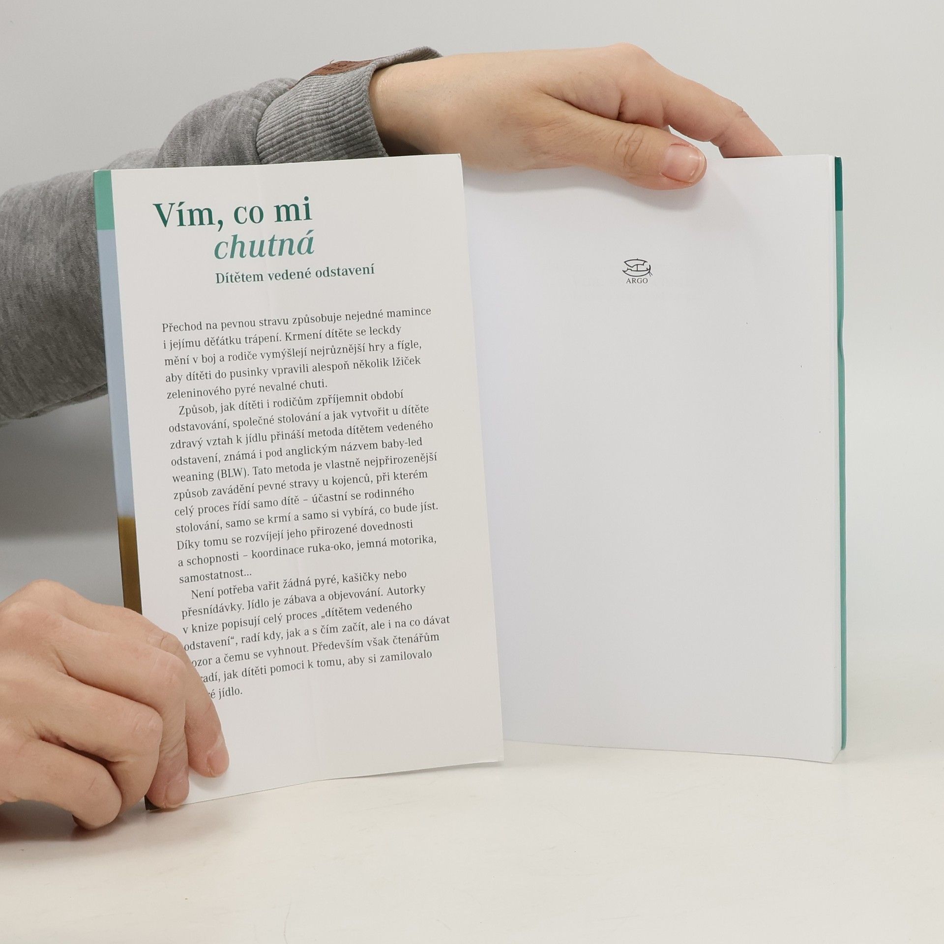 K českému čtenáři se konečně dostává kniha o „baby-led weaning“ (BLW), tedy o zřejmě nejpřirozenějším způsobu zavádění pevné stravy u kojenců, kdy celý proces řídí samo dítě- účastní se rodinného stolování, samo se krmí a samo si vybírá, co bude jíst. Díky tomu se rozvíjejí přirozené dovednosti a schopnosti dítěte, koordinace ruka-oko, jemná motorika, samostatnost… Není potřeba vařit žádná pyré, kašičky nebo přesnídávky. Jídlo je zábava a jídelní stůl se nemění v bojiště, jak tomu často bývá při klasickém krmení lžičkou. Autorky- odbornice na stravování malých dětí a novinářka- v knize popisují celý proces „dítětem vedeného odstavení“, radí kdy, jak a s čím začít, ale i na co dávat pozor a čemu se vyhnout. Především však čtenářům poradí, jak dítěti pomoci k tomu, aby si zamilovalo dobré jídlo.