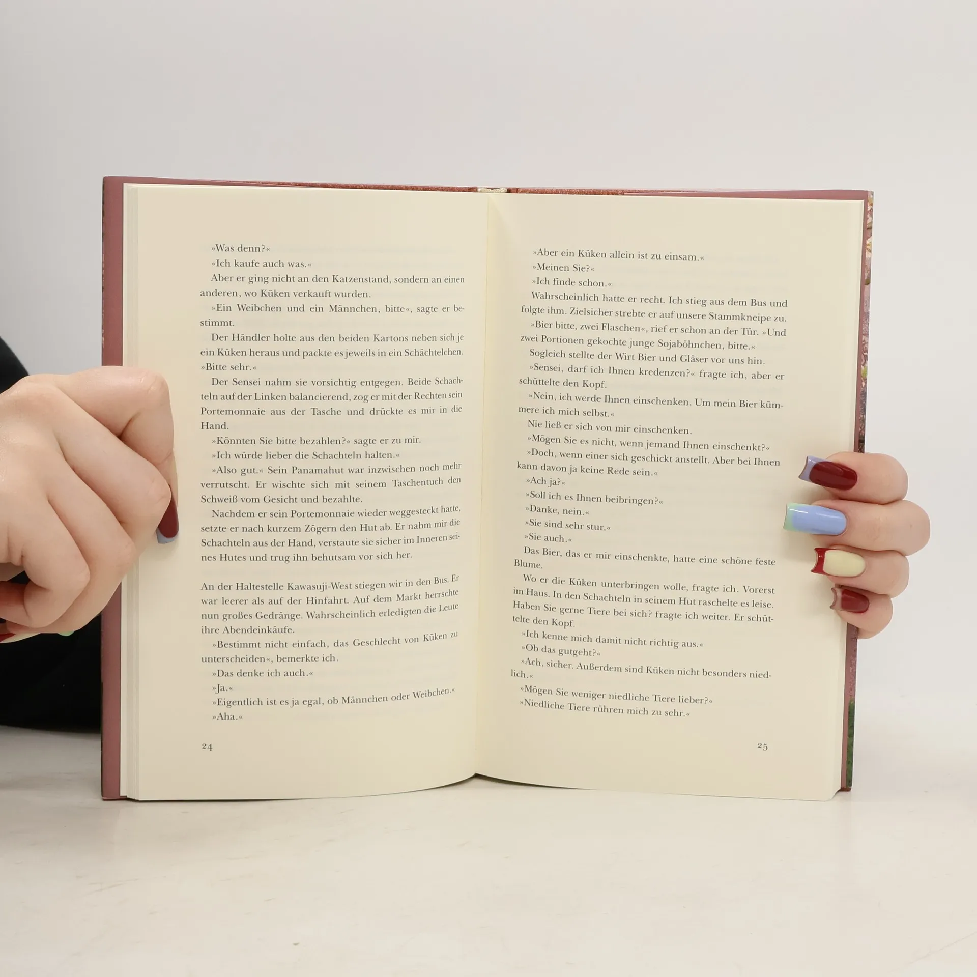 Eine selbstbewusste Frau, ein alter, weiser Mann, reichlich Sake, etwas Walfischspeck und immer wieder Lotuswurzel - Zutaten dieser stillen, faszinierend fremden Liebesgeschichte aus Japan. Tsukiko ist achtunddreißig und lebt allein. Zur Liebe, glaubt sie, sei sie nicht begabt. Da trifft sie in einer Kneipe ihren alten Japanisch-Lehrer wieder, den sie nur den Sensei nennt. Auch er lebt allein, in einer etwas verwahrlosten Wohnung, wo er merkwürdige Gegenstände sammelt. Einer sucht die Nähe des anderen und scheint gleichzeitig vor ihr zu fliehen. Selten wurde die Annäherung zweier Menschen so subtil und zugleich eindringlich beschrieben.