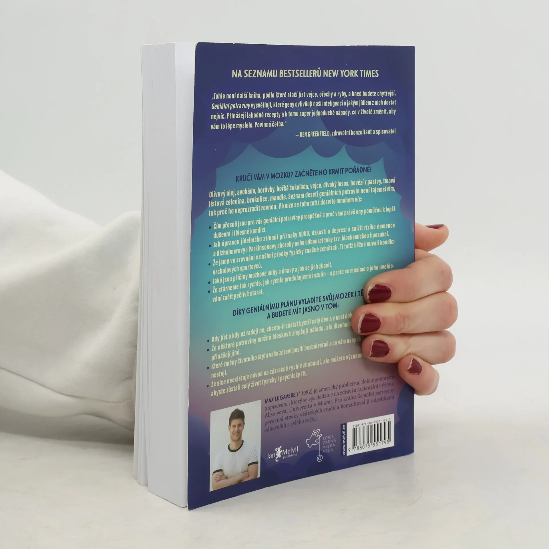 Co se stane, když někdo propojí výzkum optimalizace mozkových funkcí a nutriční psychiatrie? Kromě toho, že dostanete doporučení jíst čokoládu, a už bychom vlastně mohli skončit s vysvětlováním, také pochopíte souvislost mezi tím, co jíte, a tím, jak se cítíte, myslíte, jak se se soustředíte a učíte, jak si pamatujete, analyzujete; zkrátka zjistíte, která jídla dělají dobře nejen tělu, ale i mozku. A mozek jste vy a celý váš život, tak ať je i ten váš geniální!