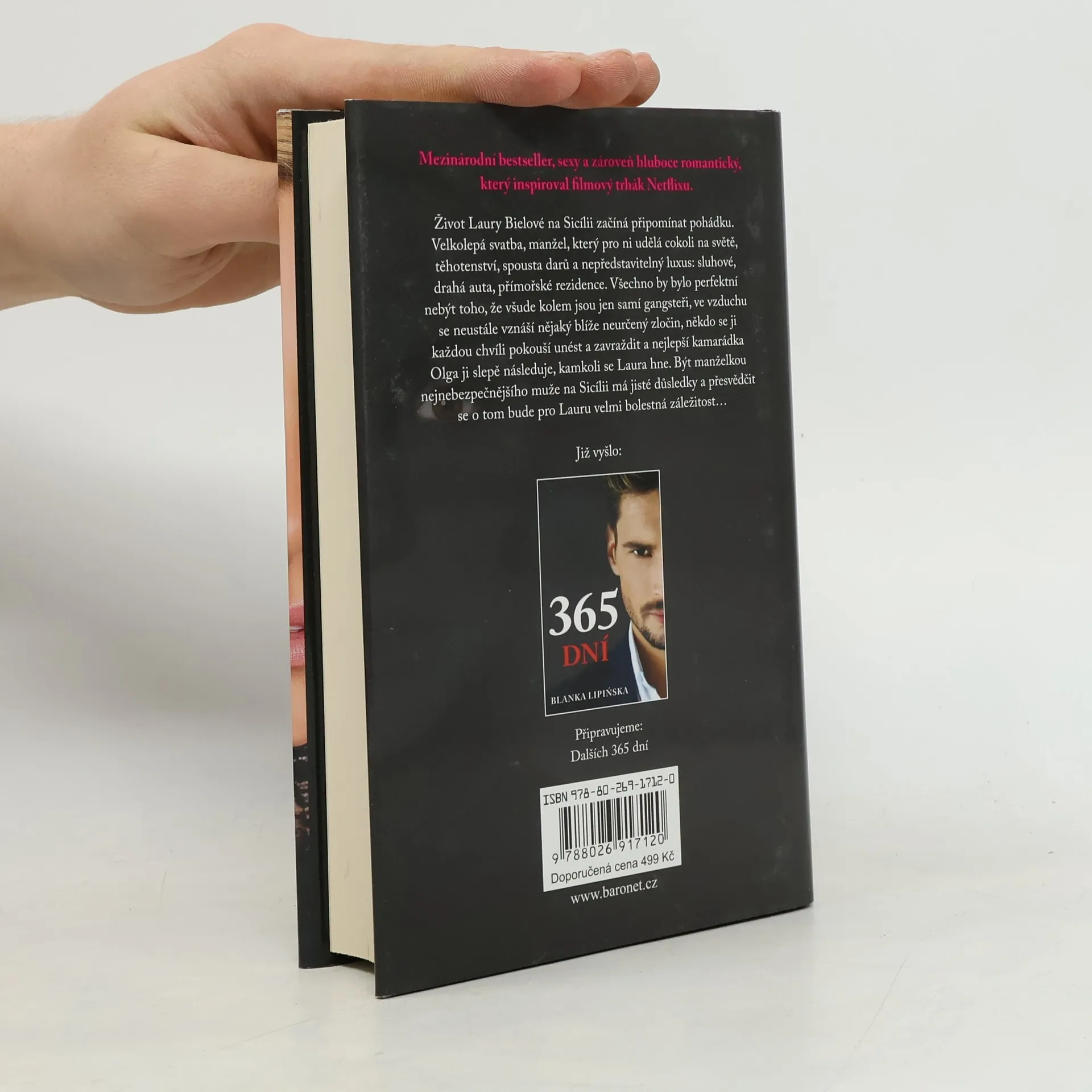 Život Laury Bielové na Sicílii začíná připomínat pohádku. Velkolepá svatba, manžel, který pro ni udělá cokoli na světě, těhotenství, spousta darů a nepředstavitelný luxus: sluhové, drahá auta, přímořské rezidence. Všechno by bylo perfektní, nebýt toho, že všude kolem jsou jen samí gangsteři, ve vzduchu se neustále vznáší nějaký blíže neurčený zločin, někdo se ji každou chvíli pokouší unést a zavraždit, a nejlepší kamarádka Olo ji slepě následuje, kamkoli se Laura hne. Být manželkou nejnebezpečnějšího muže na Sicílii má jisté důsledky a přesvědčit se o tom bude pro Lauru velmi bolestná záležitost… Pokračování bestselleru 365 dní není jen milostným příběhem, který je příjemné číst před spaním. Je to příběh plný překvapivých zvratů: útěků, pronásledování, zrady, bojů o čest a smrtelných ohrožení. Je to kniha o tom, jak je snadné se zamilovat a stejně snadno si zničit vlastní život. Každá kapitola něčím překvapí, nic není zjevné předem – kromě vášnivého sexu a her, jejichž aktéři nejsou ani dobří, ani špatní. Je to kniha o velkých neznámých, velké lásce, velkém nebezpečí… a velké vášni.