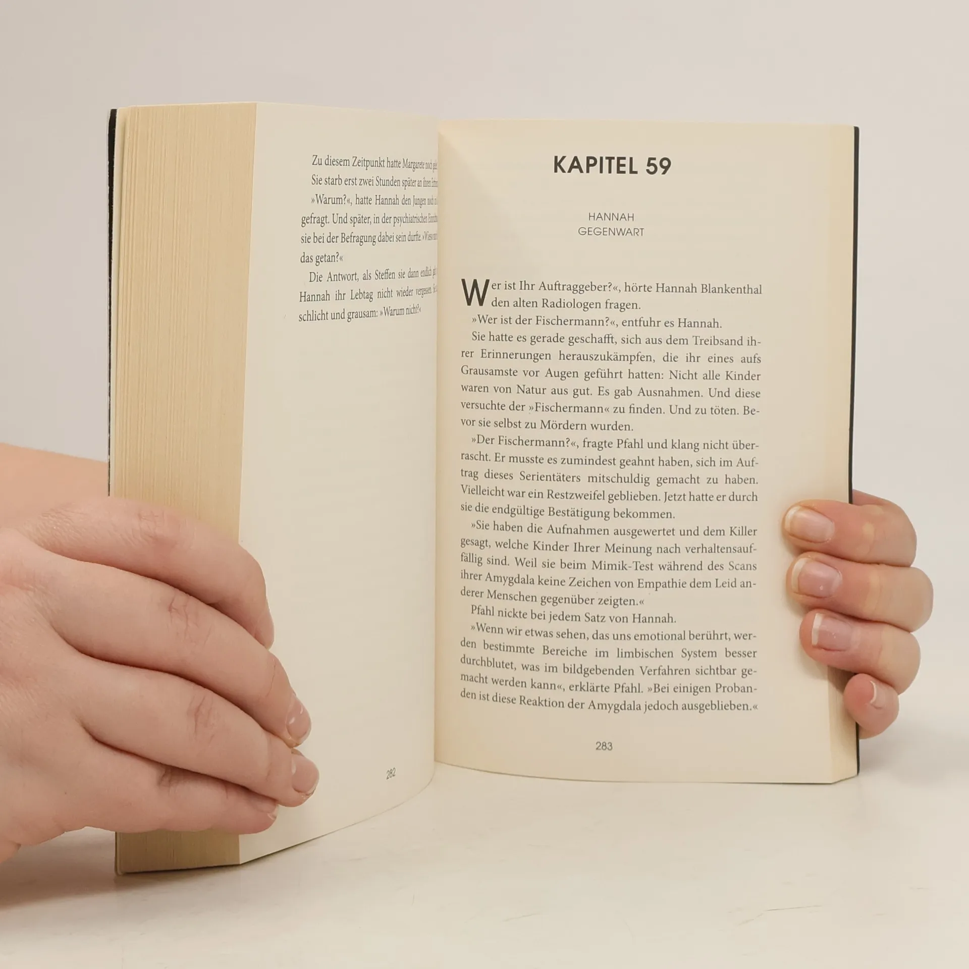 Fürchte dich nicht! Außer vor dir selbst … Sebastian Fitzeks herausragender Psychothriller um eine Mimikresonanz-Expertin, die sich in größter Not selbst nicht mehr trauen kann Ein winziges Zucken im Mundwinkel, die kleinste Veränderung in der Pupille reichen ihr, um das wahre Ich eines Menschen zu „lesen“: Hannah Herbst ist Deutschlands erfahrenste Mimikresonanz-Expertin, spezialisiert auf die geheimen Signale des menschlichen Körpers. Als Beraterin der Polizei hat sie schon etliche Gewaltverbrecher überführt. Doch ausgerechnet als sie nach einer Operation mit den Folgen eines Gedächtnisverlustes zu kämpfen hat, wird sie mit dem schrecklichsten Fall ihrer Karriere konfrontiert: Eine bislang völlig unbescholtene Frau hat gestanden, ihre Familie bestialisch ermordet zu haben. Nur ihr kleiner Sohn Paul hat überlebt. Nach ihrem Geständnis gelingt der Mutter die Flucht aus dem Gefängnis. Ist sie auf der Suche nach ihrem Sohn, um ihre „Todesmission“ zu vollenden? Hannah Herbst hat nur das kurze Geständnis-Video, um die Mutter zu überführen und Paul zu retten. Das Problem: Die Mörderin auf dem Video ist Hannah selbst! Ihr einziger Ausweg führt tief in ihr Innerstes ... Sebastian Fitzeks MIMIK-Blockbuster jetzt im Taschenbuch! Mit fachlicher Beratung von Dirk Eilert, dem führenden Mimik- und Körpersprache-Experten im deutschsprachigen Raum.