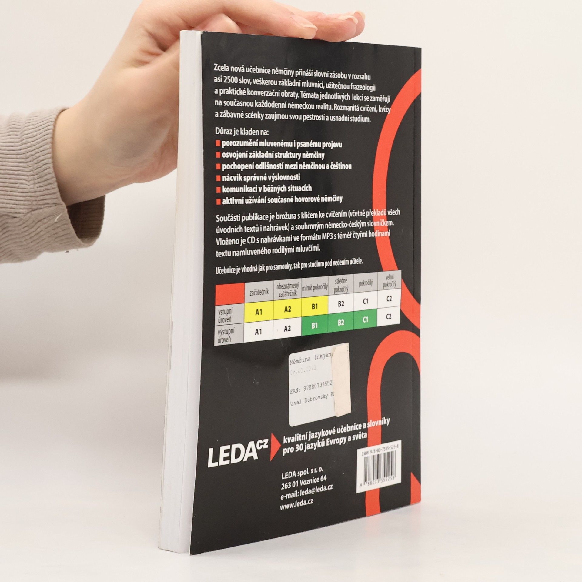 Učebnice němčiny vhodná pro samostudium je doplněna klíčem ke cvičením, německo-českým slovníkem a CD-MP3.Učebnice určená začátečníkům obsahuje celkem 25 lekcí s úvodním článkem, přehledem slovní zásoby, výkladem gramatiky a cvičeními.
