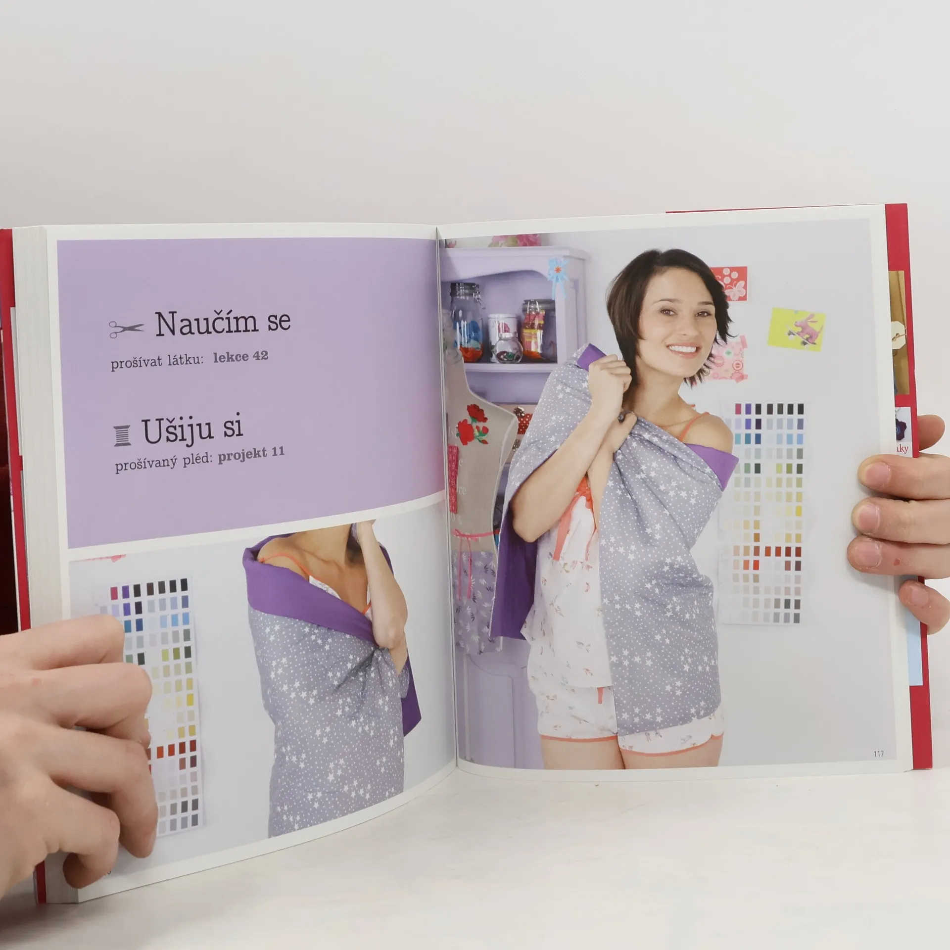 Na začínající švadlenky a krejčí zde čekají postupy na ušití 15 originálních modelů a doplňků na šicím stroji – v 50 lekcích, krok za krokem, s fotografiemi.