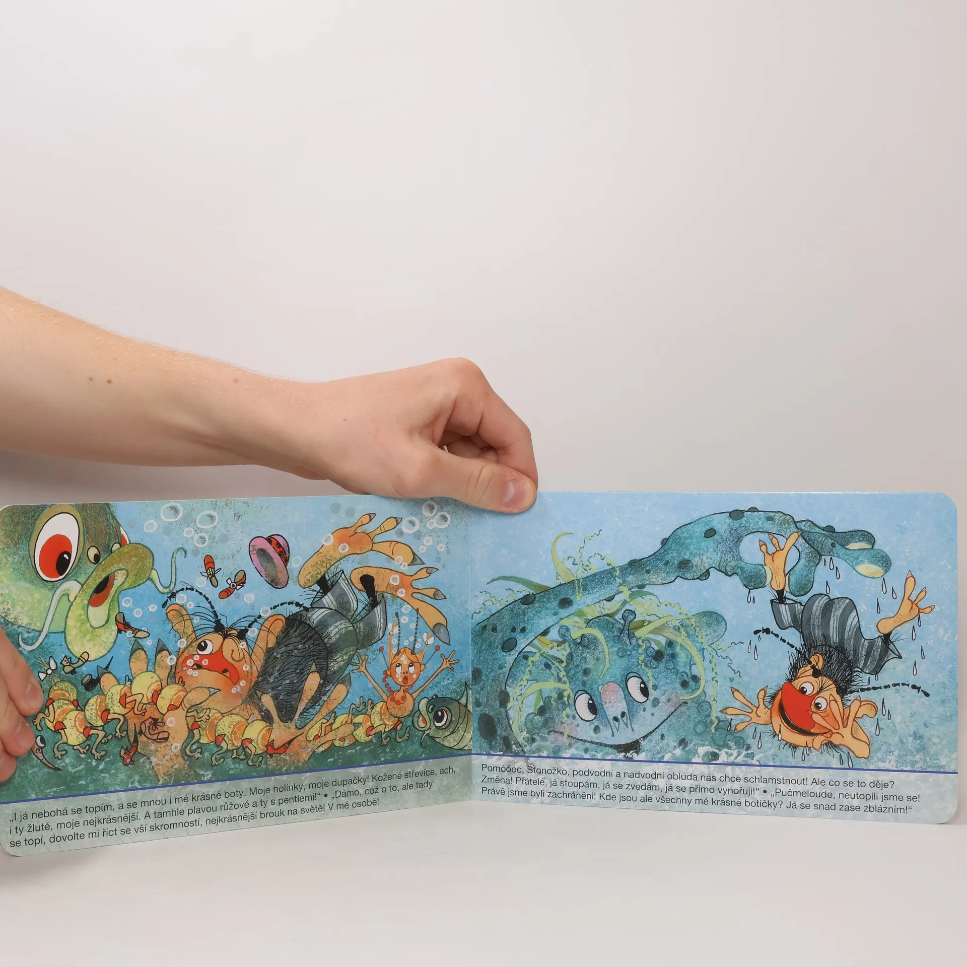 Kdo by neznal včelí medvídky, ať už z knížky, nebo z večerníčků. Tentokrát je i ostatní známé postavičky můžete potkat v leporelu. Pučmeloud totiž vyrazil se Stonožkou na ryby a rozhodl se, že je bude chytat na Spleštuli. Ale nebojte se, paní Splešťule si nedá všechno líbit!