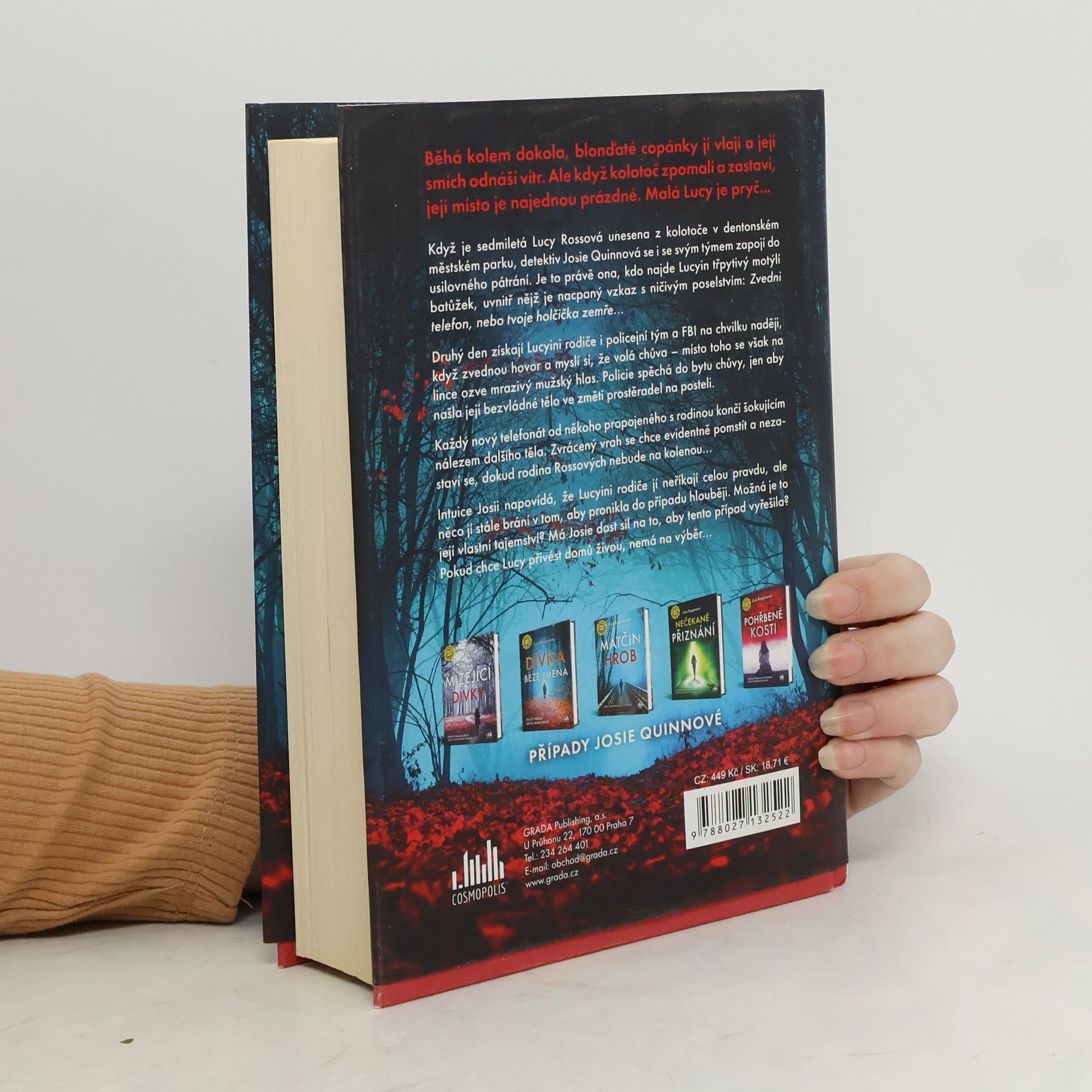 Když je sedmiletá Lucy Rossová unesena z kolotoče v dentonském městském parku, detektiv Josie Quinnová se i se svým týmem zapojí do usilovného pátrání. Je to právě ona, kdo najde Lucyin třpytivý motýlí batůžek, uvnitř nějž je nacpaný vzkaz s ničivým poselstvím: Zvedni telefon, nebo tvoje holčička zemře... Druhý den získají Lucyini rodiče i policejní tým a FBI na chvilku naději, když zvednou hovor a myslí si, že volá chůva – místo toho se však na lince ozve mrazivý mužský hlas. Policie spěchá do bytu chůvy, jen aby našla její bezvládné tělo ve změti prostěradel na posteli. Každý nový telefonát od někoho propojeného s rodinou končí šokujícím nálezem dalšího těla. Zvrácený vrah se chce evidentně pomstít a nezastaví se, dokud rodina Rossových nebude na kolenou... Intuice Josii napovídá, že Lucyini rodiče jí neříkají celou pravdu, ale něco jí stále brání v tom, aby pronikla do případu hlouběji. Možná je to její vlastní tajemství? Má Josie dost sil na to, aby tento případ vyřešila? Pokud chce Lucy přivést domů živou, nemá na výběr...