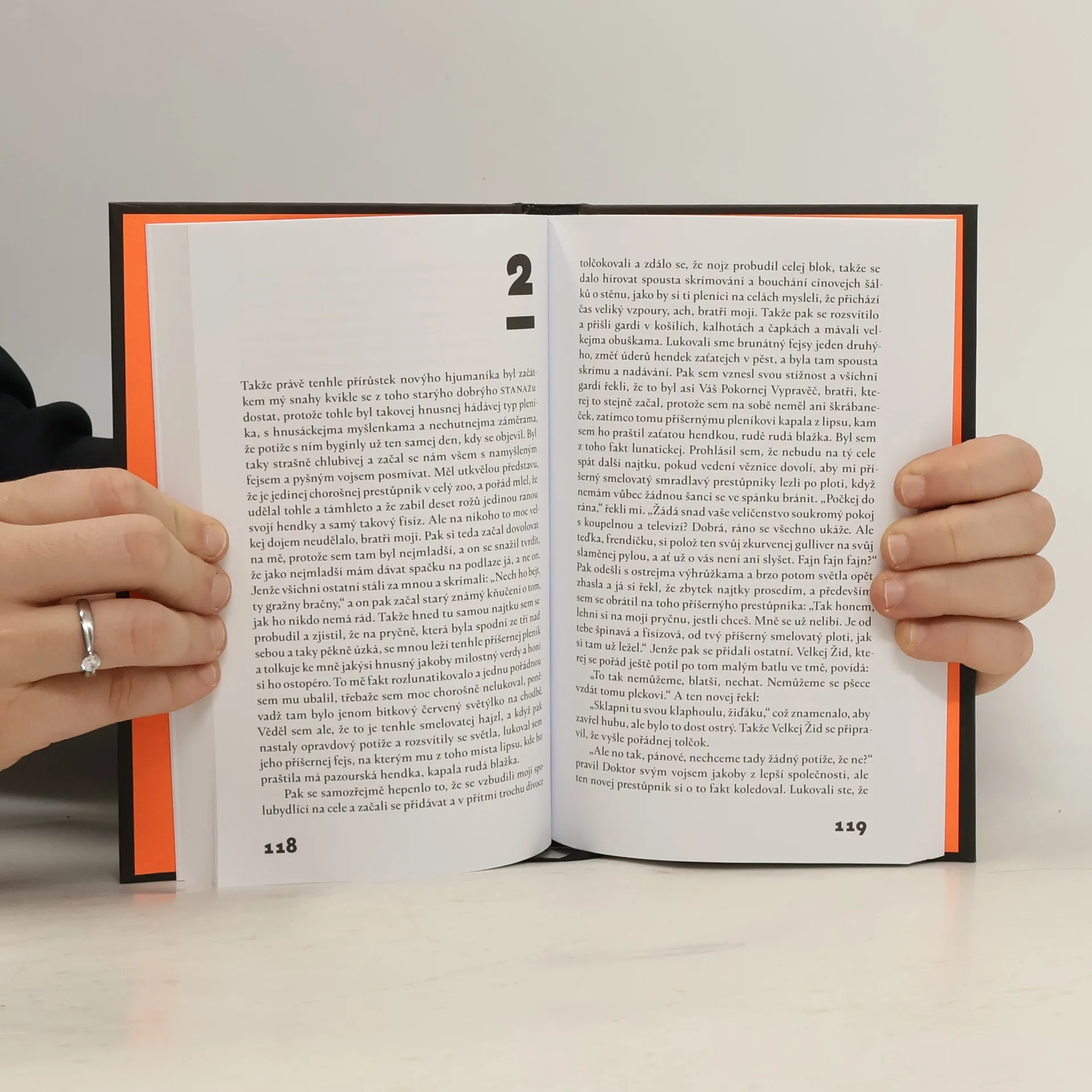 Hrozně dlouho jsem se Pomeranči vyhýbala, kvůli jeho pověsti, ale nakonec jsem se odhodlala. Očekávala jsem sled nechutností, kterej vlastně ani nebude mít příběh, ale jsem fakt příjemně překvapená. Hrozně mě balil newspeak a celej projev. Násilí bylo snesitelný, příběh super. Trochu mě teda zklamal konec - jakože dospěl a čau?