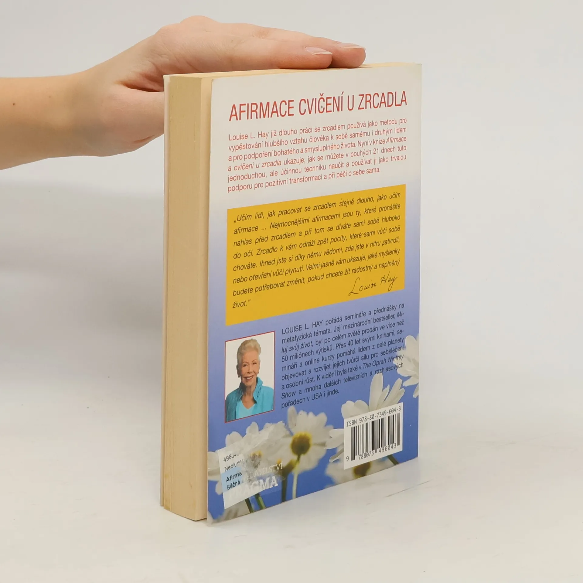 Louise L. Hay již dlouho práci se zrcadlem používá jako metodu pro vypěstování hlubšího vztahu člověka k sobě samému i druhým lidem a pro podpoření bohatého a smysluplného života. Nyní v knize Afirmace a cvičení u zrcadla ukazuje, jak se můžete v pouhých 21 dnech tuto jednoduchou, ale účinnou techniku naučit a používat ji jako trvalou podporu pro pozitivní transformaci a při péči o sebe.