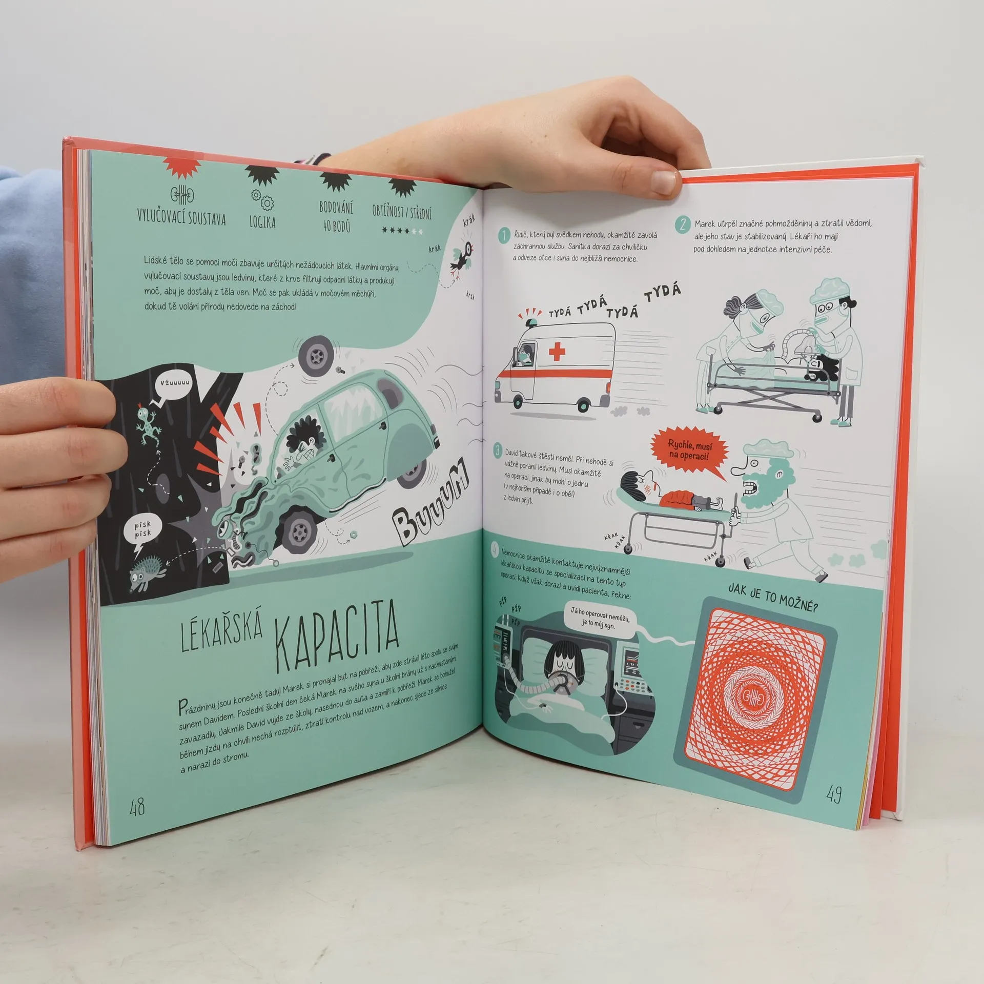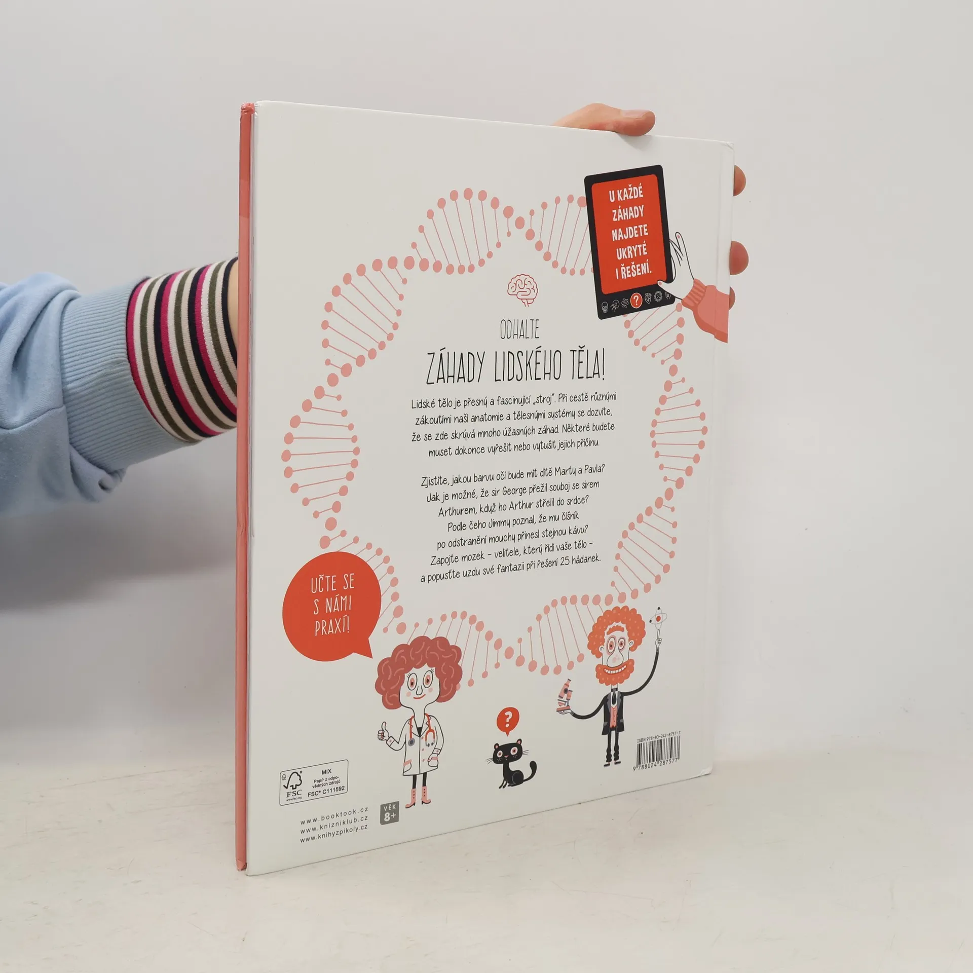 Lidské tělo je přesný a fascinující mechanismus. Vydejte se s námi na cestu různými zákoutími naší anatomie a tělesných systémů. Staňte se detektivy lidského těla. Dozvíte se nejen spoustu informací ale také to, že skrývá několik úžasných záhad. Některým budete muset i sami přijít na kloub. Podaří se vám zjistit, jakou barvu očí bude mít dítě Maleny a Ariela? Proč sir George přežije souboj se sirem Artušem, který ho předtím střelil do srdce? Jak Jimmy ví, že mu číšník po vylovení mouchy přinesl stejnou kávu? Zapojte mozek i fantazii a vyřešte 25 hádanek!