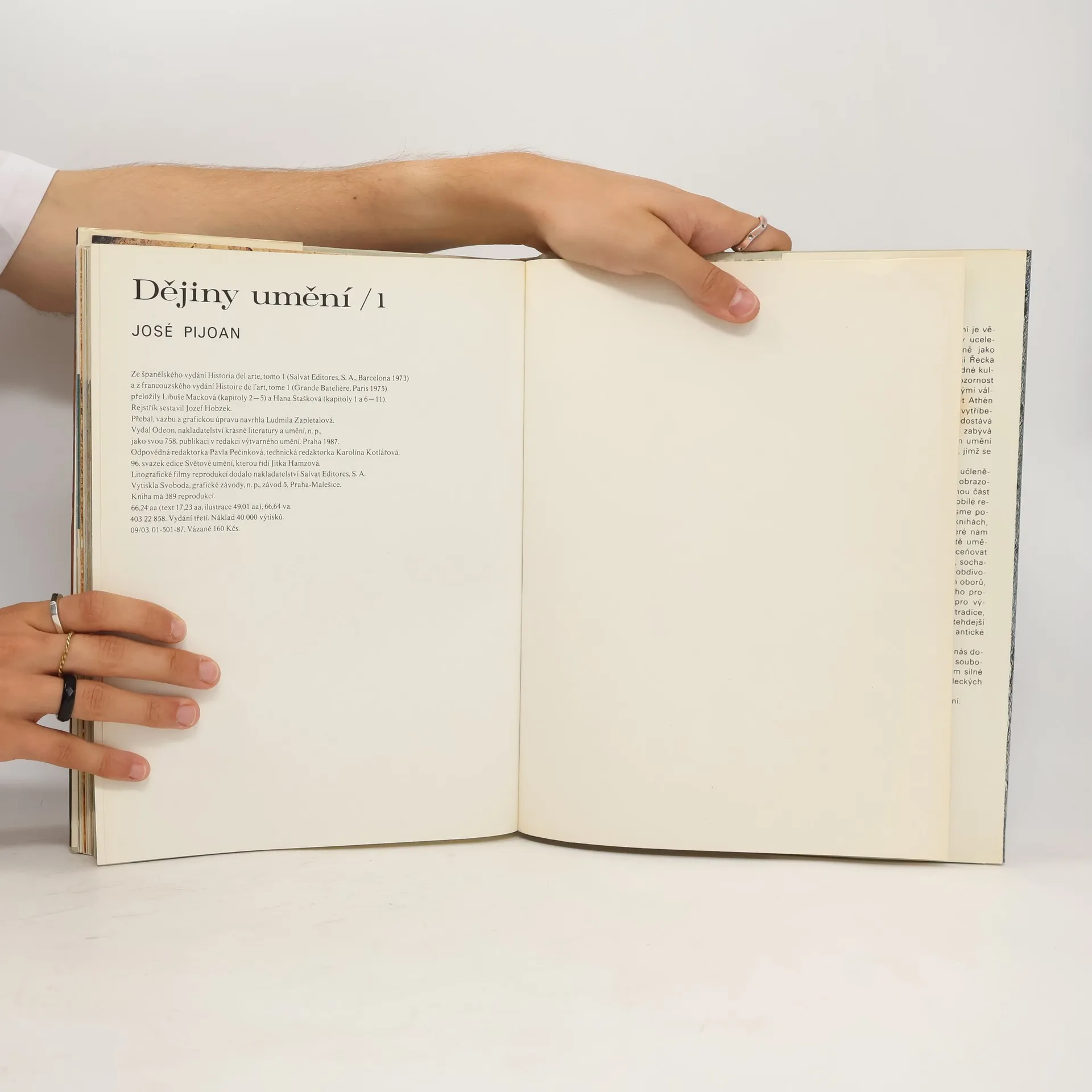 Toto rozsáhlé encyklopedické dílo čtenáře postupně seznámí s poklady světového umění. Opírá se o proslulé dějiny Josého Pijoana, které vyšly před téměř 70 lety. Čtenáři, milovníci umění, ocení bohatství obrazové dokumentace, na níž je dílo založeno. Vynikající barevné reprodukce představují jednotlivé kultury, epochy, umělecké proudy a osobnosti. Desetidílné Dějiny umění jsou určeny širokému okruhu zájemců o výtvarnou kulturu a kulturní historii. První svazek zavede čtenáře do samých počátků výtvarné tvorby v hlubinách pravěku, za kulturou starého Egypta a Íránu, za uměním sumerským, akkadským, babylonským a asyrským i za památkami předkolumbovské Ameriky.