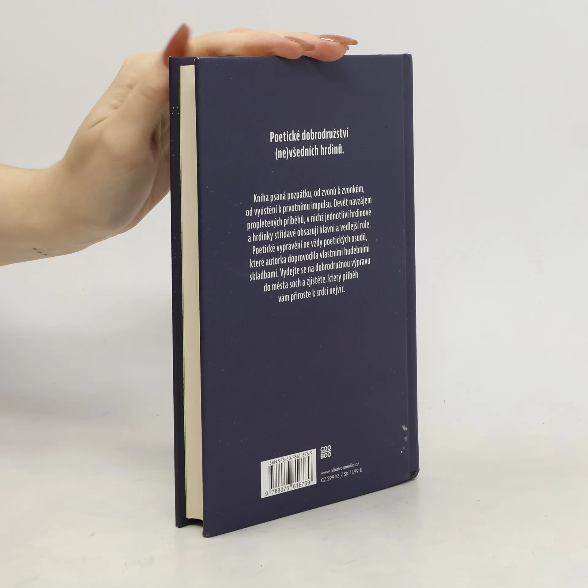 Kniha psaná pozpátku, od zvonů k zvonkům, od vyústění k prvotnímu impulsu. Devět navzájem propletených příběhů, v nichž jednotliví hrdinové a hrdinky střídavě obsazují hlavní a vedlejší role. Poetické vyprávění ne vždy poetických osudů, které autorka doprovodila vlastními hudebními skladbami. Vydejte se na dobrodružnou výpravu do města soch a zjistěte, který příběh vám přiroste k srdci nejvíc.