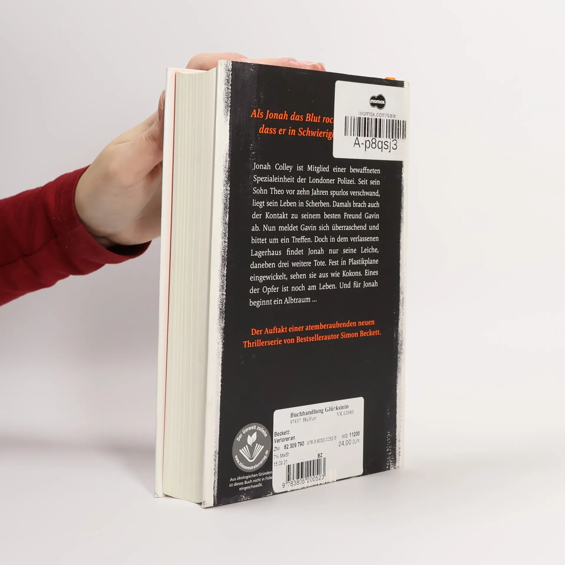 Als Jonah das Blut roch, war ihm klar, dass er in Schwierigkeiten steckte. Jonah Colley ist Mitglied einer bewaffneten Spezialeinheit der Londoner Polizei. Seit sein Sohn Theo vor zehn Jahren spurlos verschwand, liegt sein Leben in Scherben. Damals brach auch der Kontakt zu seinem besten Freund Gavin ab. Nun meldet Gavin sich überraschend und bittet um ein Treffen. Doch in dem verlassenen Lagerhaus findet Jonah nur seine Leiche, daneben drei weitere Tote. Fest in Plastikplane eingewickelt, sehen sie aus wie Kokons. Eines der Opfer ist noch am Leben. Und für Jonah beginnt ein Albtraum… Der Auftakt einer atemberaubenden neuen Thrillerserie von Bestsellerautor Simon Beckett.