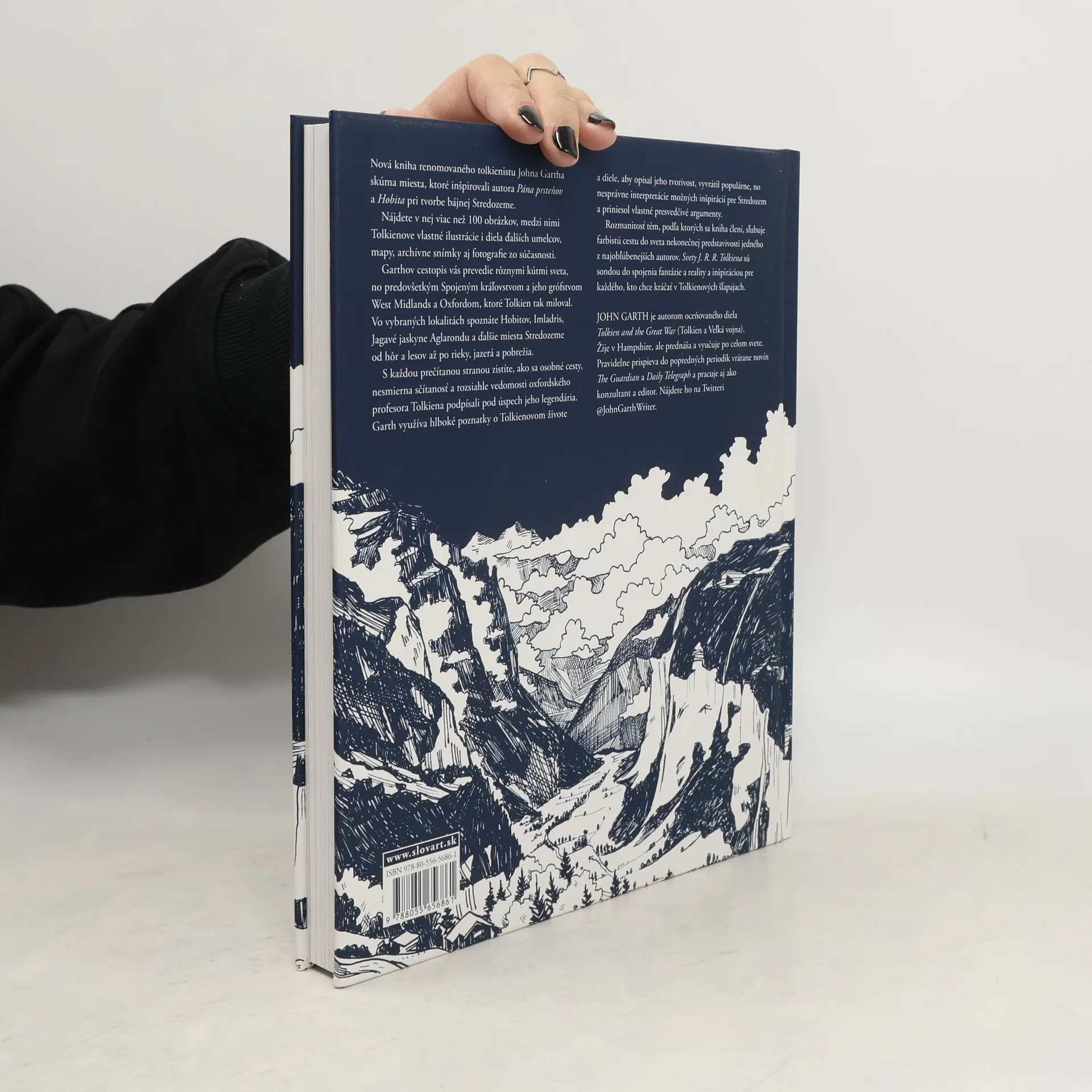 Nová kniha renomovaného tolkienistu Johna Gartha skúma miesta, ktoré inšpirovali autora Pána prsteňov a Hobita pri tvorbe bájnej Stredozeme. Nájdete v nej viac než 100 obrázkov, medzi nimi Tolkienove vlastné ilustrácie i diela ďalších umelcov, mapy, archívne snímky aj fotografie zo súčasnosti. Garthov cestopis vás prevedie rôznymi kútmi sveta, no predovšetkým Spojeným kráľovstvom a jeho grófstvom West Midlands a Oxfordom, ktoré Tolkien tak miloval. Vo vybraných lokalitách spoznáte Hobitov, Imladris, Jagavé jaskyne Aglarondu a ďalšie miesta Stredozeme od hôr a lesov až po rieky, jazerá a pobrežia. Garth využíva hlboké poznatky o Tolkienovom živote a diele, aby opísal jeho tvorivosť, vyvrátil populárne, no nesprávne interpretácie možných inšpirácií pre Stredozem a priniesol vlastné presvedčivé argumenty. Svety J. R. R. Tolkiena sú sondou do spojenia fantázie a reality a inšpiráciou pre každého, kto chce kráčať v Tolkienových šľapajach.