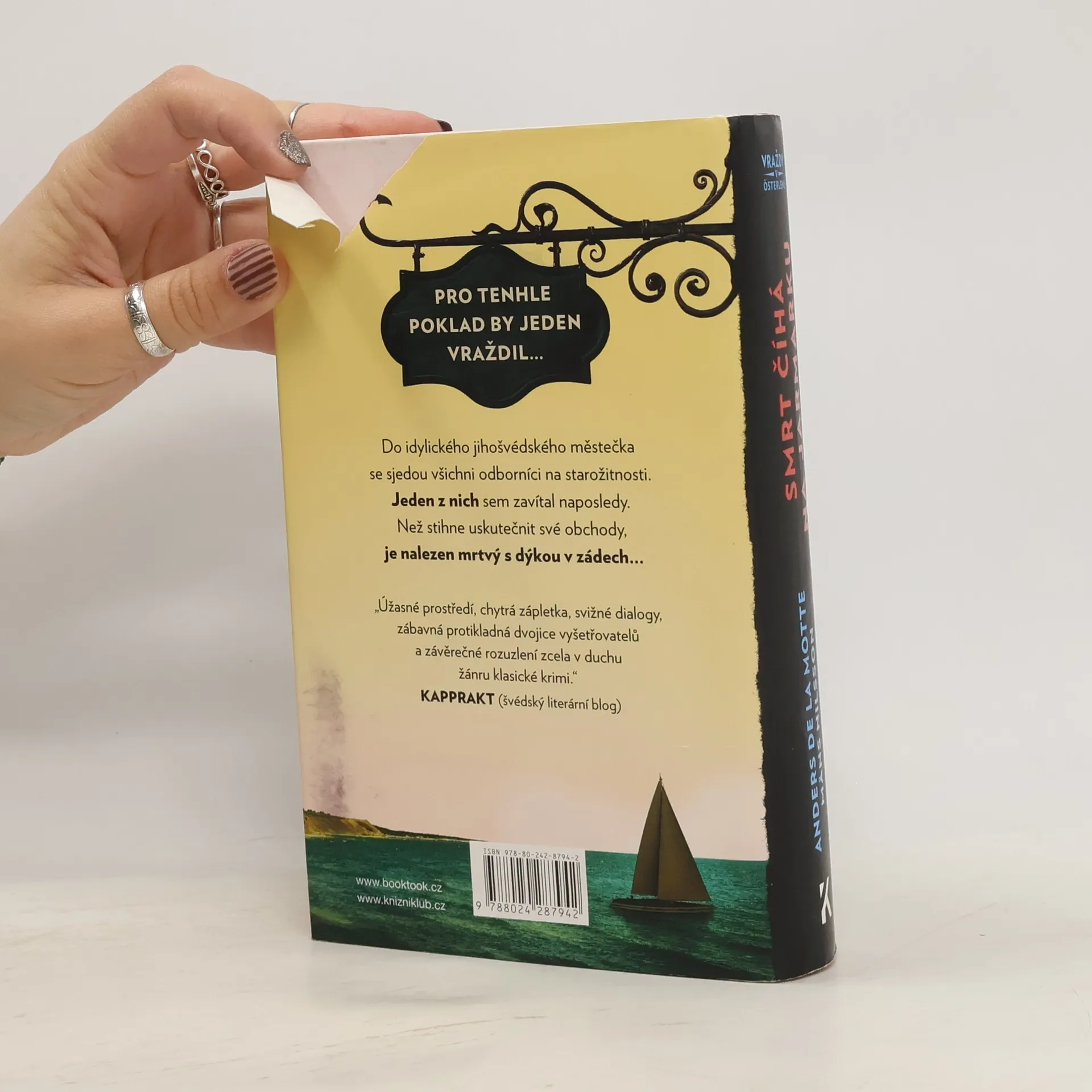 Na prosluněném, idylickém švédském venkově dojde k dalšímu zločinu: smrt v Österlenu tentokrát udeří na jarmarku starožitných a sběratelských věcí, který se každoročně koná v malém místním městečku. Věhlasný stockholmský inspektor Peter Vinston musí znovu přerušit dovolenou, aby se ujal vyšetřování vraždy neblaze proslulého překupníka. K ruce dostane opět Tove Espingovou, ctižádostivou policistku znalou místních poměrů. Oba překvapí, kolik zášti, starých křivd a neodhalených tajemství skrývá svět obchodu se starožitnostmi. Kdo by však byl kvůli nim ochoten sáhnout někomu na život?