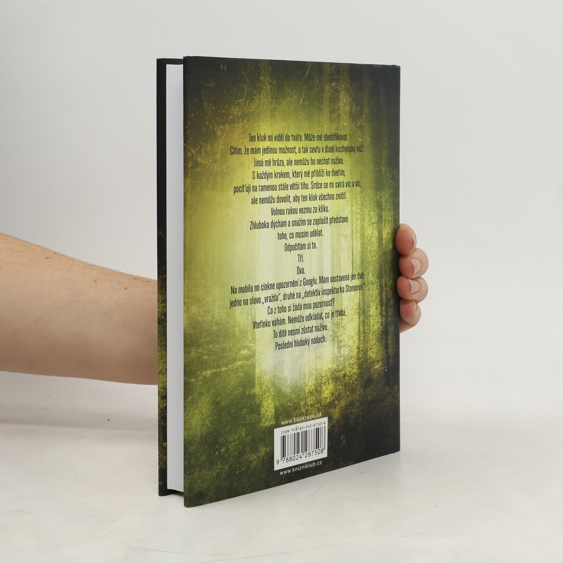 Musíš mi zabránit, abych ublížil někomu jinému. Nechci dělat tyhle hrozné věci. Pomozte mi, než budu nucen to udělat znovu. A udělám to znovu, protože nemám na výběr. Nikdy jsem neměl na výběr.V rušném nákupním centru svírá malá holčička plyšového medvídka a drží se ho v nepřítomnosti své matky Katriny. O několik hodin později je v opuštěné budově objeveno Katrinino tělo. Pro detektivku Kim Stoneovou to vypadá jako rychlá a účinná vražda. Ale Kiminy instinkty jí říkají, že v této nesmyslné vraždě je víc, než se na první pohled zdá. Jaký byl motiv zabití mladé matky na nákupech s jejím dítětem?O několik dní později je v místním parku nalezena druhá žena, jejíž krk je zlomený stejně jako Katriinin, a její šestiletý syn se pohřešuje.Se svou kolegyní, detektivkou Stacey Woodovou, která pracuje na dalším nevyřešeném zločinu, a s členem týmu, truchlící nad ztrátou blízkého příbuzného, ​​se Kim snaží proniknout do toho, co se rychle stává složitým případem. A když na Kimině stole přistane ručně psaný dopis od vraha adresovaný jí a prosící o pomoc, ví, že čas přivést malého chlapce živého domů utíká. S podporou analytika písma a profilovače se Kim a tým začnou dostávat do mysli vraha a učiní šokující objev. Některé z obětí mají na zápěstích škrábance.Nejsou to ale žádné náhodné škrábance. Vrah je používá ke komunikaci s někým. Otázkou je... s kým?A pokud to Kim brzy nezjistí, zemře další nevinná duše.