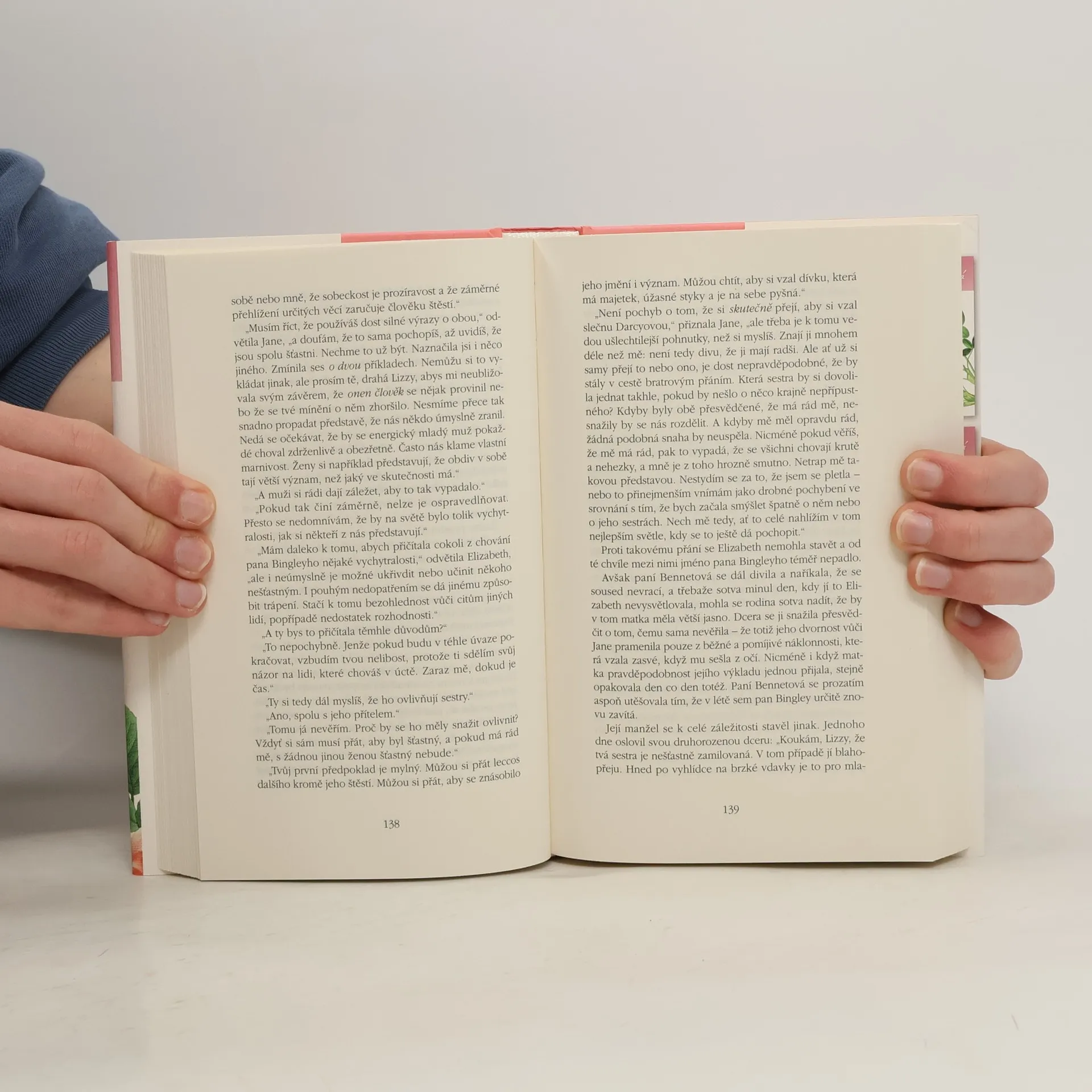 Slavný román Jane Austenové vykresluje, jak může nový mladý soused převrátit vzhůru nohama život v rodině s pěti dcerami. V ovzduší se vznáší pýcha, láska, předsudky, společenské konvence, zlomená srdce i společenský skandál, ale také sebepoznání a pochopení. Příběh lásky a hodnot odkrývá vztahy mezi společenskými vrstvami Anglie na přelomu 18. a 19. století a s jemnou, avšak nepřehlédnutelnou ironií líčí prostředí anglického venkova, tamní rodinné vztahy a snahy matek najít svým dcerám vhodné ženichy. Autorka se pohybuje na hraně odlehčeného a vážného tónu, její vtipné postřehy prozrazují bystrou a nemilosrdnou pozorovatelku. Nový překlad Kateřiny Hilské dává vyprávění svěží tempo, přičemž nic neubírá na zmíněné ironičnosti, a svět Elizabeth Bennetové a pana Darcyho je v jejím podání barevnější a jasnější, než jak jsme ho znali doposud.