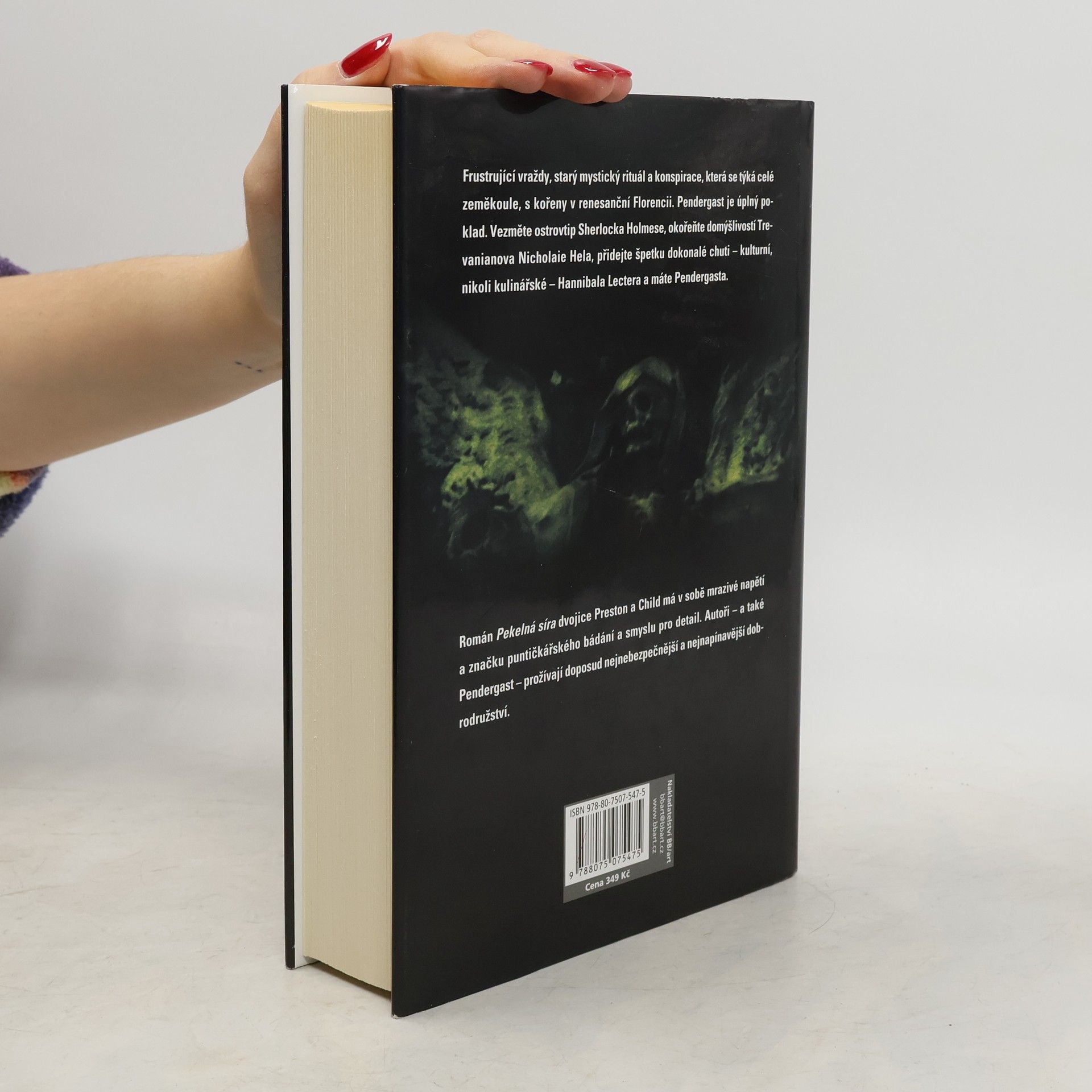 Paznecht vypálený do zdi... Zápach síry ve vzduchu... Přišel si ďábel pro to, co mu náleží? Za dveřmi skvostného sídla v Hamptonu objeví zvláštní agent FBI Pendergast příšerný zločin, hrůzná jatka zdánlivě nadpřirozeného původu. Doutnající ostatky nechvalně proslulého uměleckého kritika Jeremyho Grovea a roztavený kříž, který mu vypálil znamení na hrudi, se našly v zamčené a zabarikádované podkrovní místnosti. Otisk kopyta na prknech podlahy a zápach pekelné síry připomínají legendární hrůzostrašné příběhy těch, kdo uzavřeli smlouvu s ďáblem.