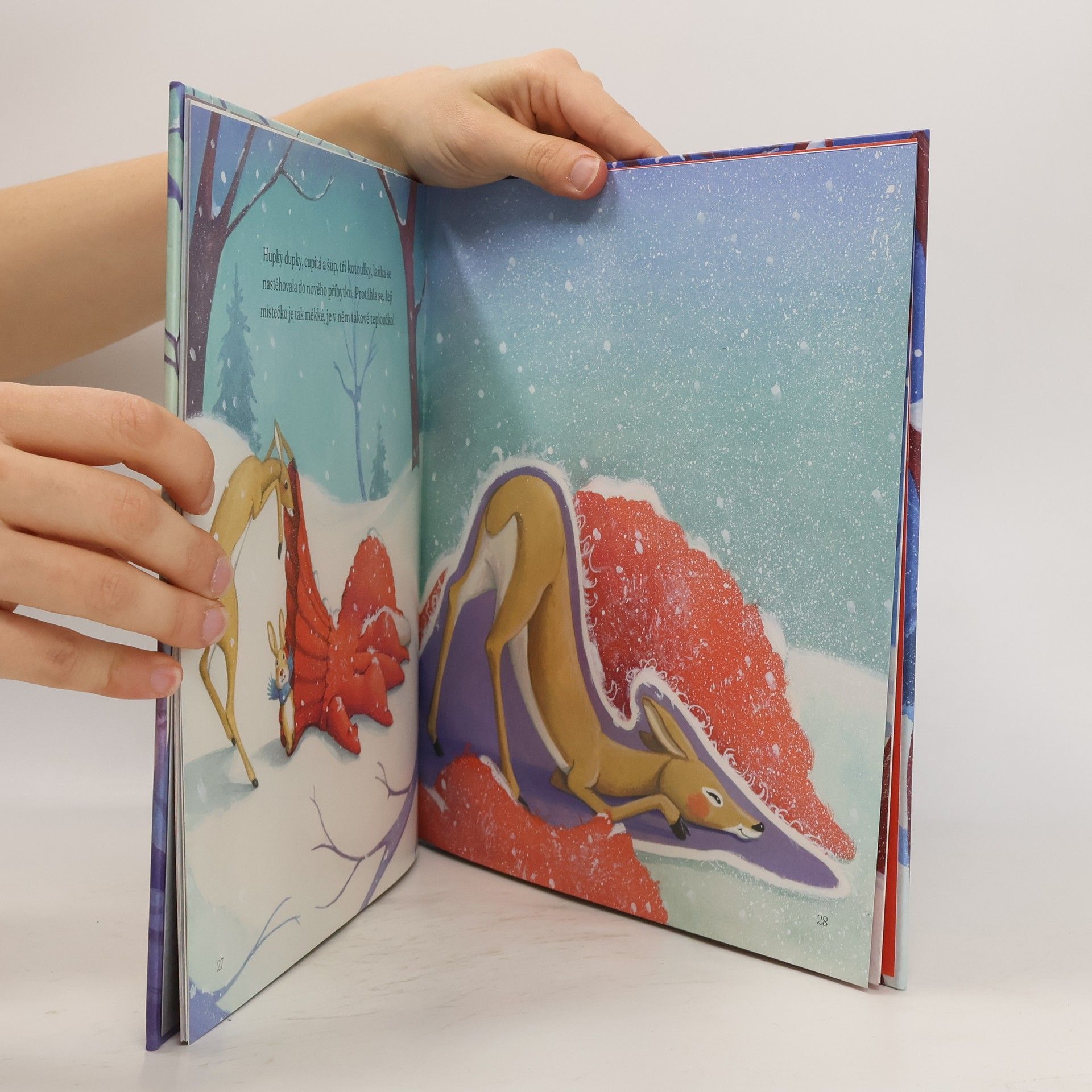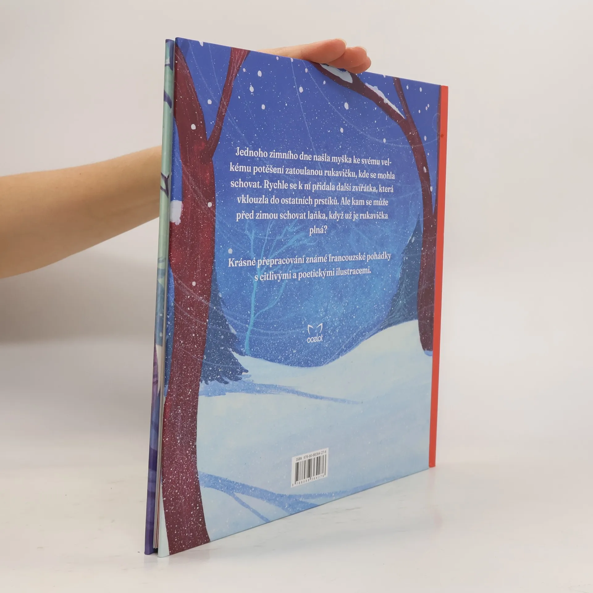 Jednoho zimního dne našla myška ke svému velkému potěšení zatoulanou rukavičku, kde se mohla schovat. Rychle se k ní přidala další zvířátka, která vklouzla do ostatních prstíků. Ale kam se může před zimou schovat laňka, když už je rukavička plná?Krásné přepracování známé francouzské pohádky s citlivými a poetickými ilustracemi.