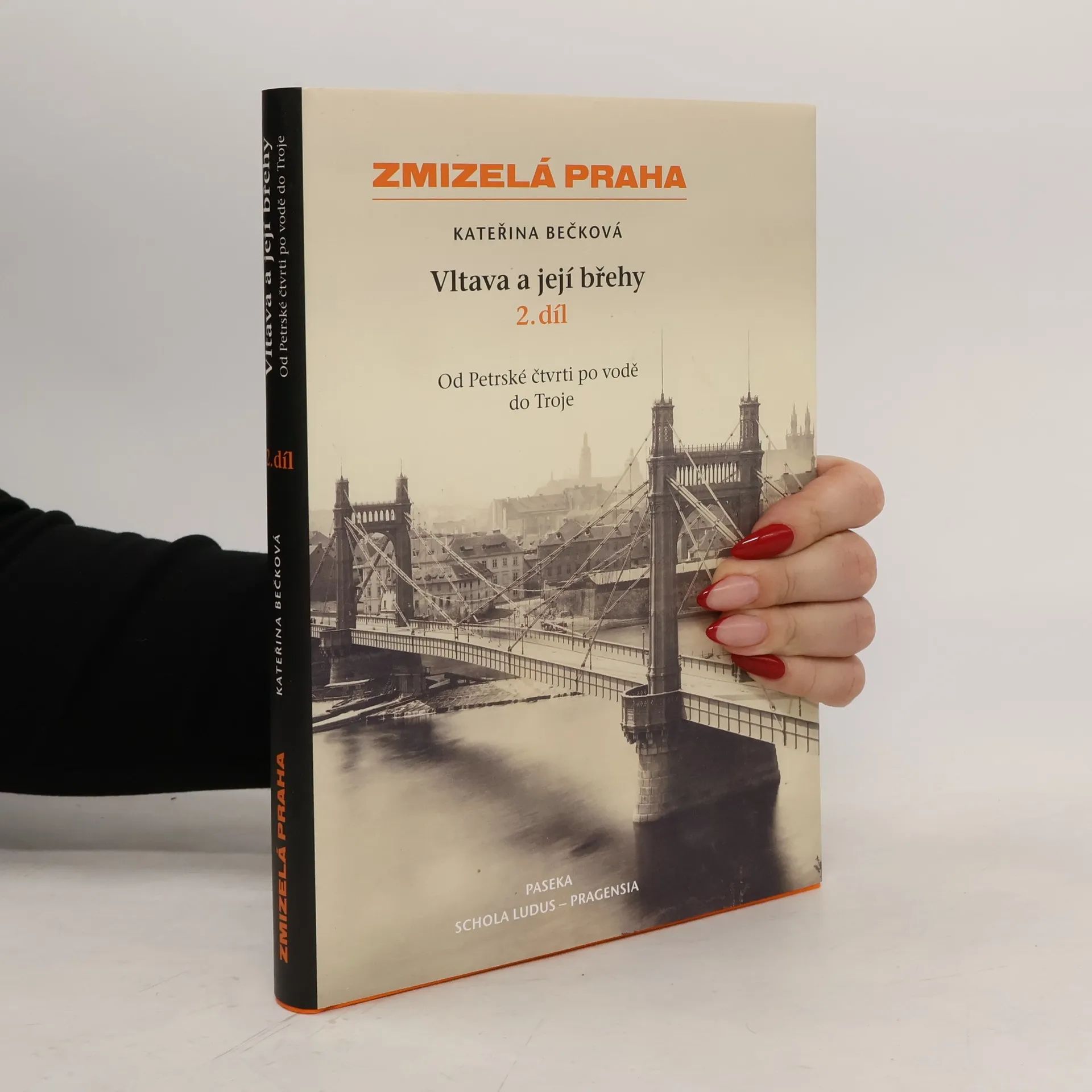 Od Petrské čtvrti po vodě do Troje. Řeka Vltava je pro vzhled, charakter a život Prahy živlem zcela zásadním. Ačkoliv ji dnes chápeme spíše jako prvek přinášející do obrazu města vjemy estetické, v historii byly její funkce daleko praktičtější. Sloužila jako zdroj energie, dopravní cesta či výrobna ledu a tomu odpovídal i její charakter. Kniha se zaměřuje na popis zaniklých a proměněných objektů - mlýnů, jezů, náplavek, ostrovů, mostů, vodáren a vodárenských věží - a na stavby spjaté s kanalizací a splavněnám řeky - nábřeží, novodobé mosty a jejich výzdobu, přístavy, plavební komory a zajímavosti navigace. Pojednáno je také využití řeky pro zábavu a oddech Pražanů v podobě plováren, výletních plaveb, sportovních přístavů a rybaření. po úspěšném prvním dílu, jenž obsáhl "horní tok" řeky od Braníku až po František, vychází svazek mapující petrskou čtvrť, Karlín s Rohanským ostrovem, Maniny s tématem přeložení koryta řeky, Karlínský, Libeňský a Holešovický přístav či plavební průplav mezi Trojou a Bubenčí.