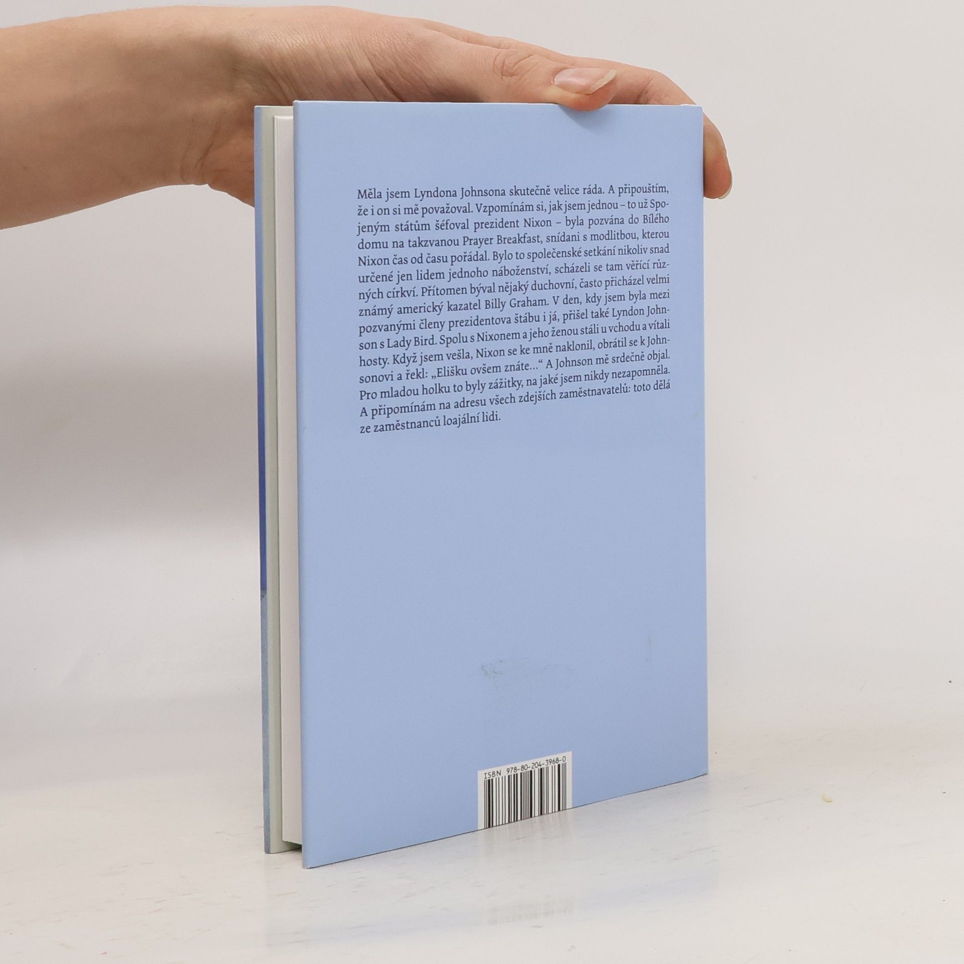Nové doplněné a rozšířené vydání vzpomínek Elišky Haškové Coolidge, významné Češky, která se dokázala prosadit jak ve vrcholném politickém prostředí v USA, tak po revoluci i v bývalé vlasti. Rodačka z Prahy, emigrovala v roce 1949 do USA a je již dostatečně známo, že kariéru začala v Bílém domě, kde dlouho pracovala jako zvláštní asistentka pěti amerických prezidentů, dále ve vysokých pozicích na ministerstvu zahraničních věcí USA a v dalších důležitých amerických vládních organizacích. Dnes napomáhá společenským i podnikatelským kontaktům mezi Českou republikou a USA a poskytuje poradenství nejen v otázkách protokolu, etikety, personalistiky a public relations, ale i v oblasti gastronomie a turistiky.