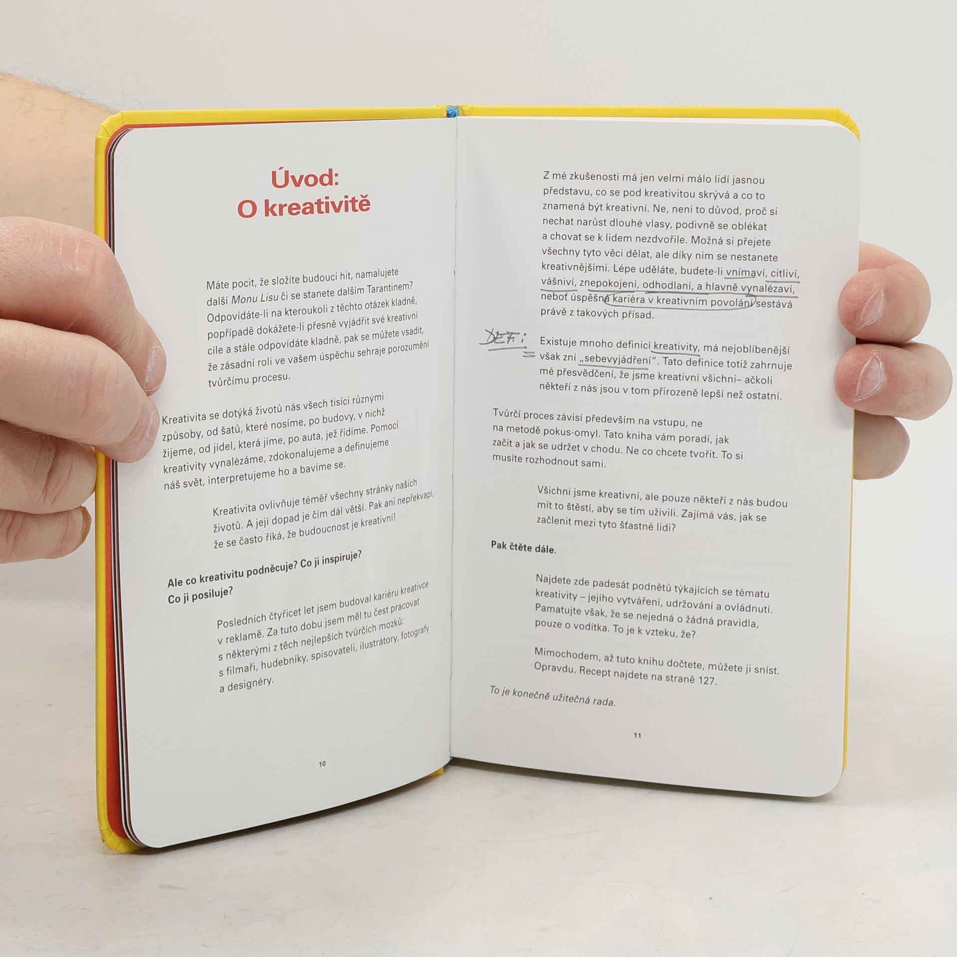 Kreativita není zaměstnáním. Pomocí kreativity vynalézáme, zdokonalujeme a definujeme náš svět.Vysvětlujeme a bavíme se. Ale co podněcuje kreativitu? Co ji inspiruje? Co ji posiluje? Tato vtipná kapesní kniha o kreativním myšlení, nahuštěná padesáti vynikajícími a provokativními vhledy do záležitostí kreativity a tvůrčího procesu, pochází z pera Johna Hegartyho, jednoho z nejslavnějších světových kreativců v reklamě.