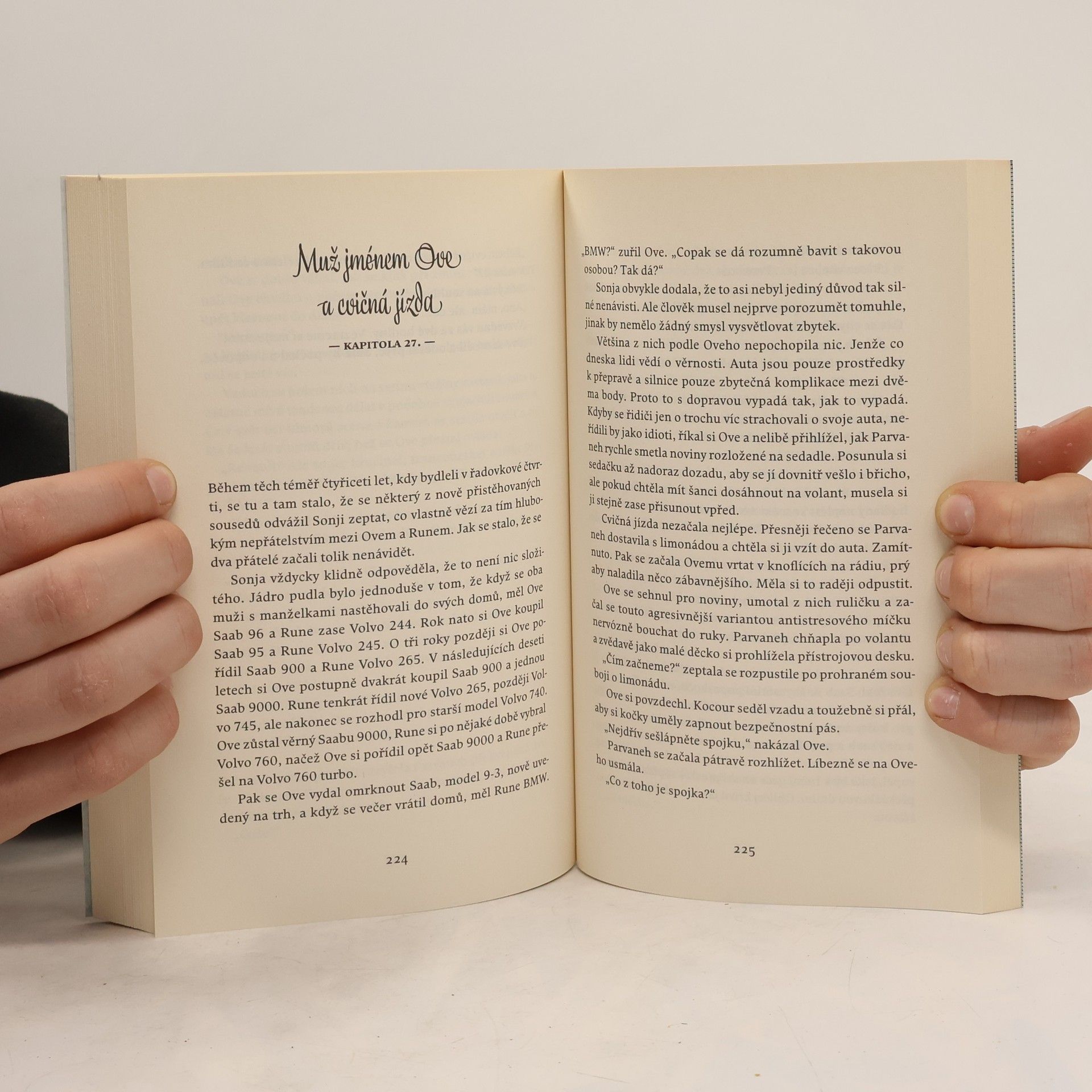 Román o lásce, pořádném nářadí a o tom, proč je důležité jezdit saabem. Ovemu je padesát devět let. Řídí saab. Na pozici předsedy družstva vlastníků byl sice vystřídán už před pár lety — což on sám považuje za převrat —, ale to mu rozhodně nebrání ve vykonávání funkce strážce pořádku. Samozvaného strážce pořádku. Když se do protějšího domku přistěhují noví sousedé a místo pozdravu se jim jen tak mimochodem podaří nacouvat do Oveho poštovní schránky, spustí se kolotoč nečekaných událostí — začíná příběh o překvapivém přátelství, toulavé kočce a prastarém umění řídit. A o tom, jak se změní životy lidí, kteří se s Ovem setkají.