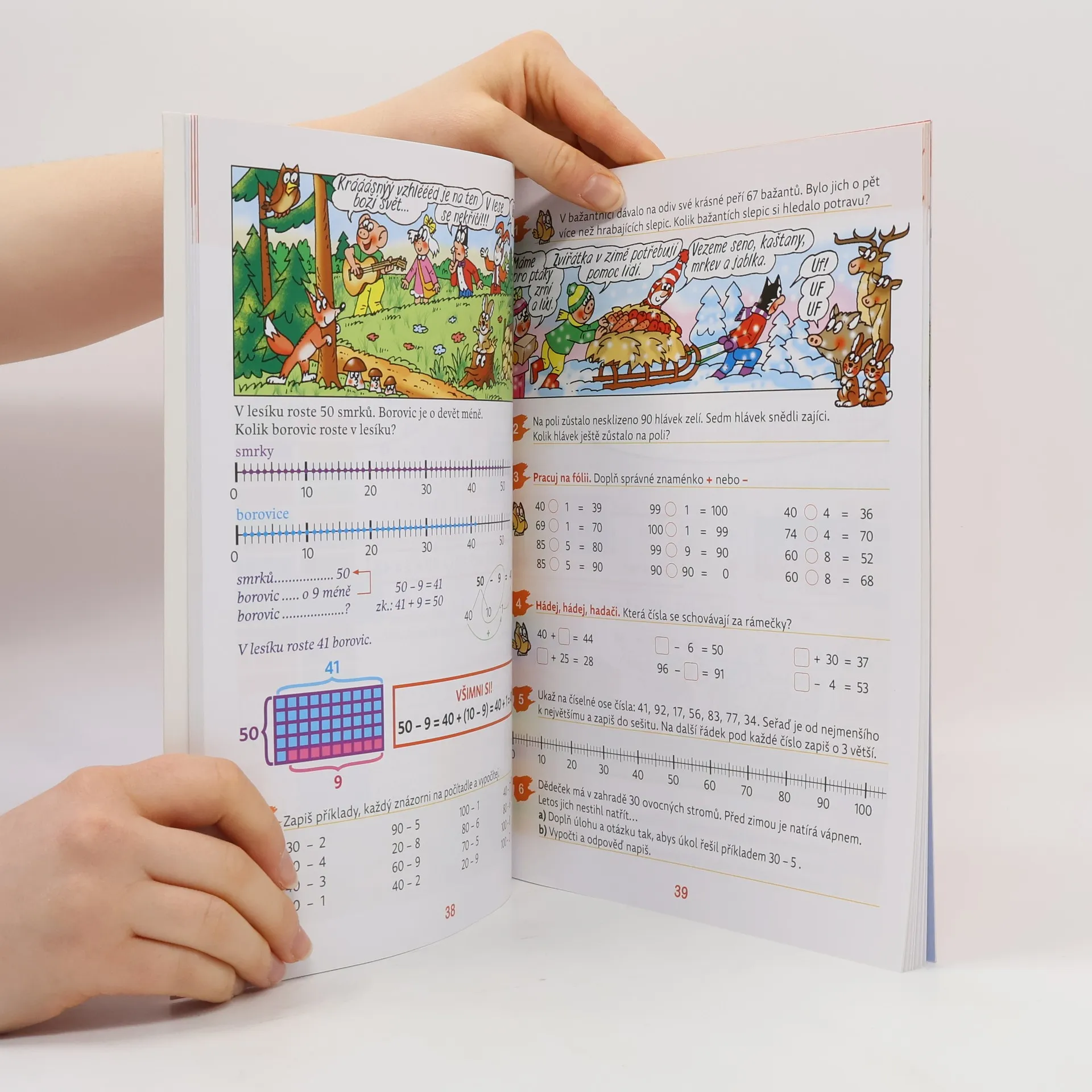 Na začátku každé kapitoly naleznou žáci úvodní ilustraci či komiks s kamarády ze Čtyřlístku, který jim humorně přiblíží učivo kapitoly. Učebnice jsou přehledné, žáci se v nich snadno orientují. Obsahují množství numerických úkolů i slovních úloh základního i rozšiřujícího učiva, které vedou k naplňování vzdělávacího obsahu vzdělávacího oboru Matematika a její aplikace. Obměna tradiční matematiky je ve 2. ročníku pojata integrovaně s ostatními předměty.Geometrické učivo je zařazeno v zadní části učebnice, aby bylo možné jej vždy přehledně zopakovat. Využijte 24 tisknutelných pracovních listů v materiálech ke stažení (zobrazuje se po přihlášení).