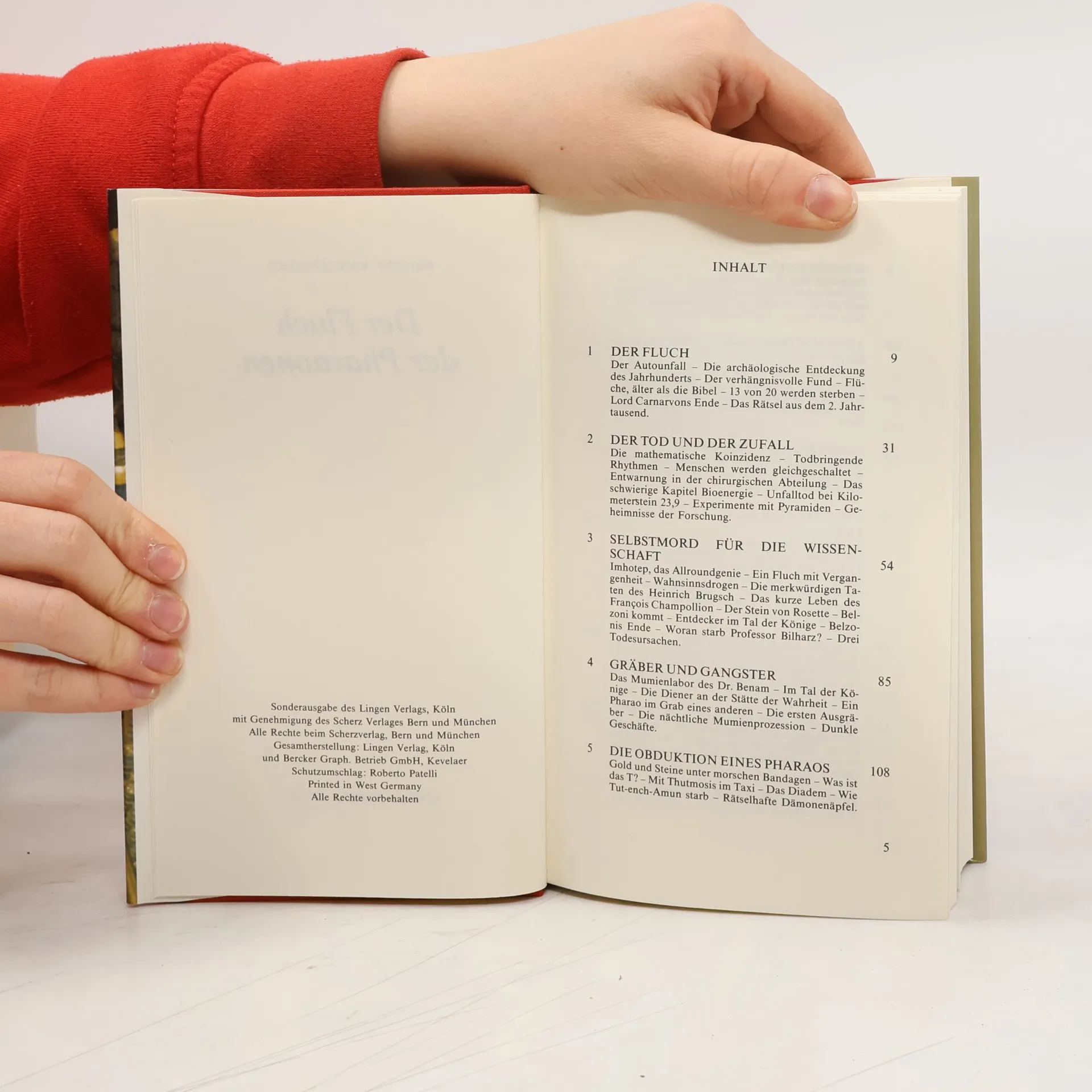 „Der Tod wird den mit seinen Schwingen erschlagen, der die Ruhe des Pharaos stört.“ Diese Inschrift trug ein geheimnisvolles Tontäfelchen, das Forscher in der Vorkammer des Grabes von Tut-ench-Amun fanden. Niemand ahnte, daß dreizehn der zwanzig Wissenschaftler des Forschungsteams bald nicht mehr am Leben sein würden. Die Inschrift gilt seitdem als verschollen, doch die Vorstellung eines uralten, tödlichen Fluchs hält die Menschheit in Atem. Ein sachlicher, fesselnder Bericht darüber, wie die Historiker unserer Tage die Legende des Fluches enträtseln und die Irrtümer von Jahrtausenden korrigieren.