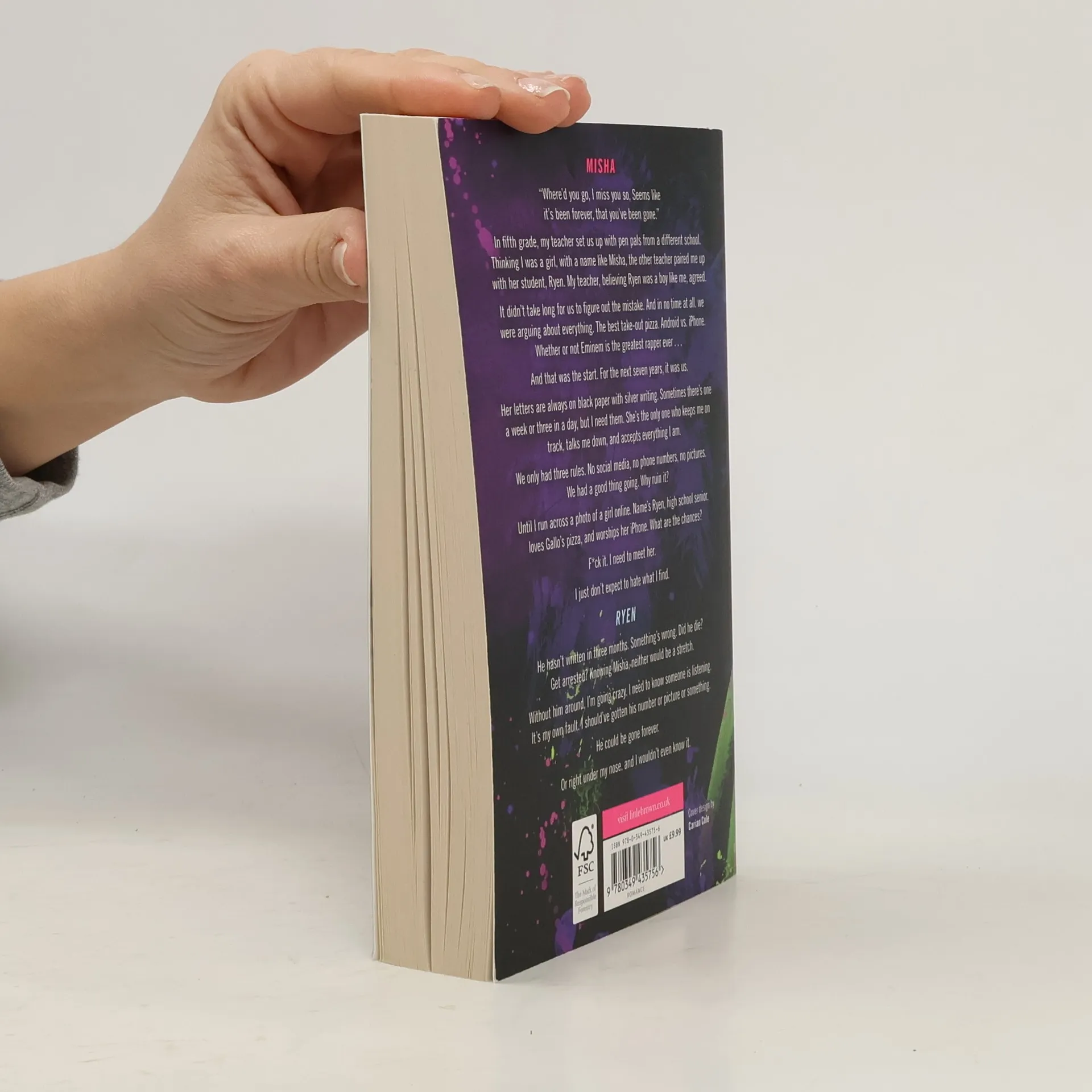 Misha I can’t help but smile at the words in her letter. She misses me. In fifth grade, my teacher set us up with pen pals from a different school. Thinking I was a girl, with a name like Misha, the other teacher paired me up with her student, Ryen. My teacher, believing Ryen was a boy like me, agreed. It didn’t take long for us to figure out the mistake. And in no time at all, we were arguing about everything. The best take-out pizza. Android vs. iPhone. Whether or not Eminem is the greatest rapper ever… And that was the start. For the next seven years, it was us. Her letters are always on black paper with silver writing. Sometimes there’s one a week or three in a day, but I need them. She’s the only one who keeps me on track, talks me down, and accepts everything I am. We only had three rules. No social media, no phone numbers, no pictures. We had a good thing going. Why ruin it? Until I run across a photo of a girl online. Name’s Ryen, loves Gallo’s pizza, and worships her iPhone. What are the chances? F*ck it. I need to meet her. I just don’t expect to hate what I find. Ryen He hasn’t written in three months. Something’s wrong. Did he die? Get arrested? Knowing Misha, neither would be a stretch. Without him around, I’m going crazy. I need to know someone is listening. It’s my own fault. I should've gotten his number or picture or something. He could be gone forever. Or right under my nose, and I wouldn’t even know it.