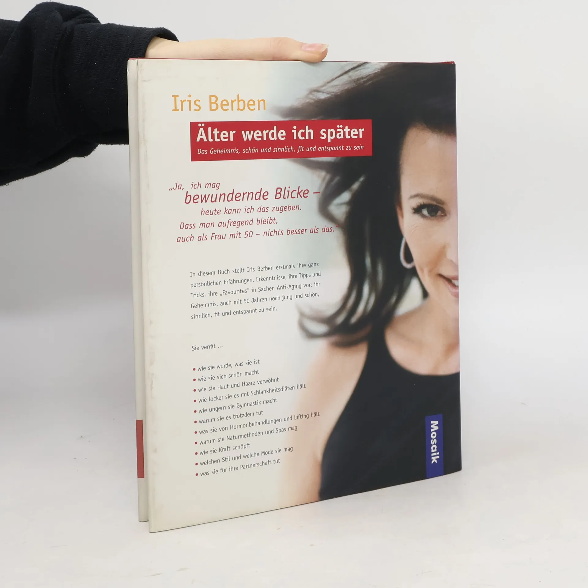 Einer Umfrage zufolge ist Iris Berben Deutschlands "bekannteste und erotischste" Schauspielerin. Als erfahrene Schauspielerin weiß sie ihre Stärken ins rechte Licht zu rücken. Privat lebt sie jedoch längst nicht so diszipliniert, wie man es von einem 50-jährigen Filmstar erwarten würde.§In diesem Buch schreibt sie erfrischend offen, was sie für ihr Aussehen tut und was nicht. Welche Schönheitsrezepte sie ausprobiert und wieder verworfen hat. Dass sie sich ein tägliches Fitnessprogramm auferlegt, obwohl sie eher der bekennende No-Sports-Typ ist. Und wie sie es mit dem so genannten gesunden Leben hält - bei Heißhungerattacken auf Spaghetti und der spontanen Lust auf ein Glas Rotwein.§Die Schauspielerin lässt uns an ihrem Leben vor und hinter den Kulissen teilnehmen. Sie verrät Tricks der Visagistin für ein makelloses Film-Make-up, aber sie schreibt auch über ihre Probleme mit grauen Haaren, Doppelkinn und Rückenverspannungen. Ungeniert berichtet sie von ihrer Einstellung zur Sexualität und von ihrem Glück als Mutter. Iris Berben hat bewusst keinen klassischen Ratgeber geschrieben, die Mischung aus persönlicher Erfahrung, Anekdoten und Expertenrat entspricht mehr ihrem Stil. Vor allem will sie nicht als "Überfrau" erscheinen, die sich in allen Situationen ihres Lebens richtig verhalten und nie Probleme mit dem Älterwerden gehabt hätte.