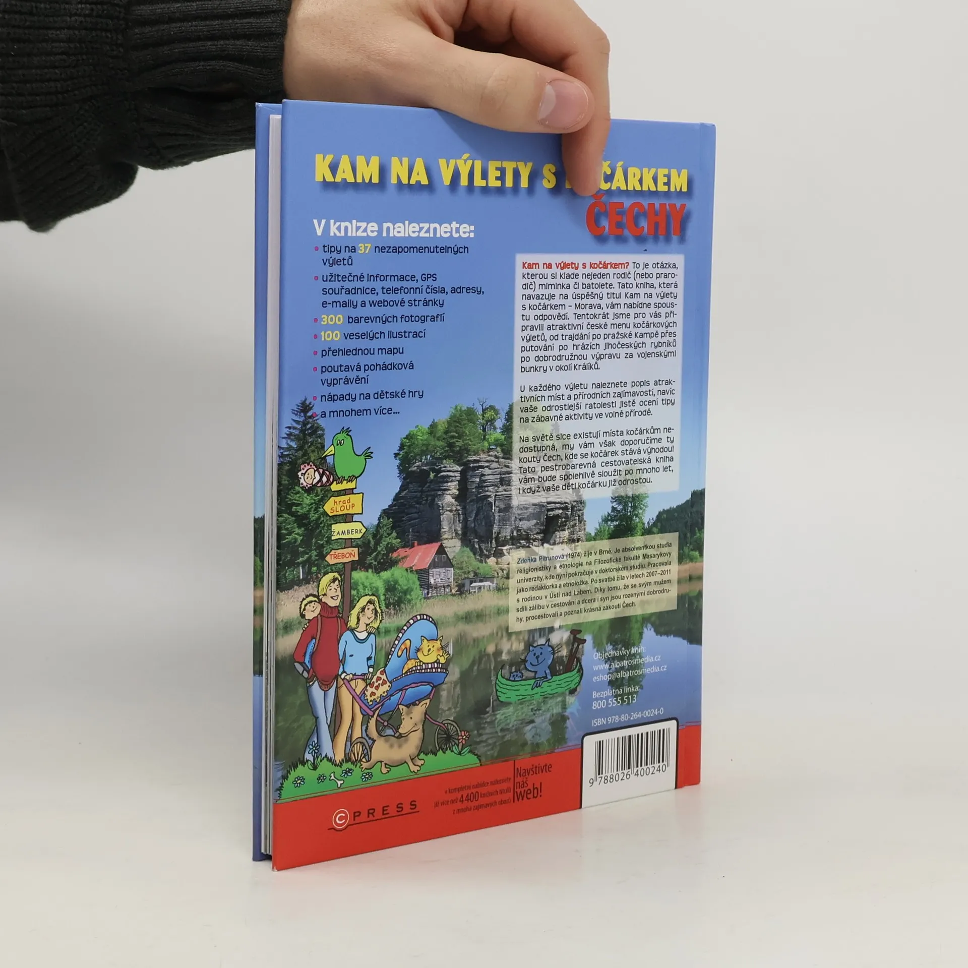 Kam na výlety s kočárkem? – otázka, kterou řeší nejeden rodič (nebo prarodič) miminka či batolete. V naší knize na ni naleznete spoustu odpovědí, a jestli jste si mysleli, že s narozením miminka končí výlety i cestování a všechny s tím spojené radosti, tak vás snadno přesvědčíme, že jste se mýlili. Teď teprve zažijete opravdové dobrodružství! Kočárek totiž není žádnou překážkou, naopak – lehce a pohodlně s vámi dojede na krásná a zajímavá místa, poskytne vašemu miminku všechen potřebný komfort, stane se vaší základnou a pro miminko bude zároveň ložnicí, jídelnou, hernou i vyhlídkovým vozem. Na světě sice existují místa kočárkům nedostupná, my vám naopak doporučíme ty kouty Čech, kde se kočárek stává výhodou. Pestrobarevná cestovatelská kniha s více než 300 barevnými fotografiemi, 90 veselými ilustracemi, hrami pro větší děti, přehlednou mapkou, pohádkovým vyprávěním a velkým množstvím ověřených informací vám bude spolehlivě sloužit po mnoho let, i když vaše děti kočárku již odrostou! V knize naleznete: •tipy na 37 nezapomenutelných výletů •užitečné informace, GPS souřadnice, telefonní čísla, adresy, maily a webové stránky •300 barevných fotografií •90 veselých ilustrací •přehlednou mapu •poutavá vyprávění pro děti •nápady na dětské hry a mnohem více…