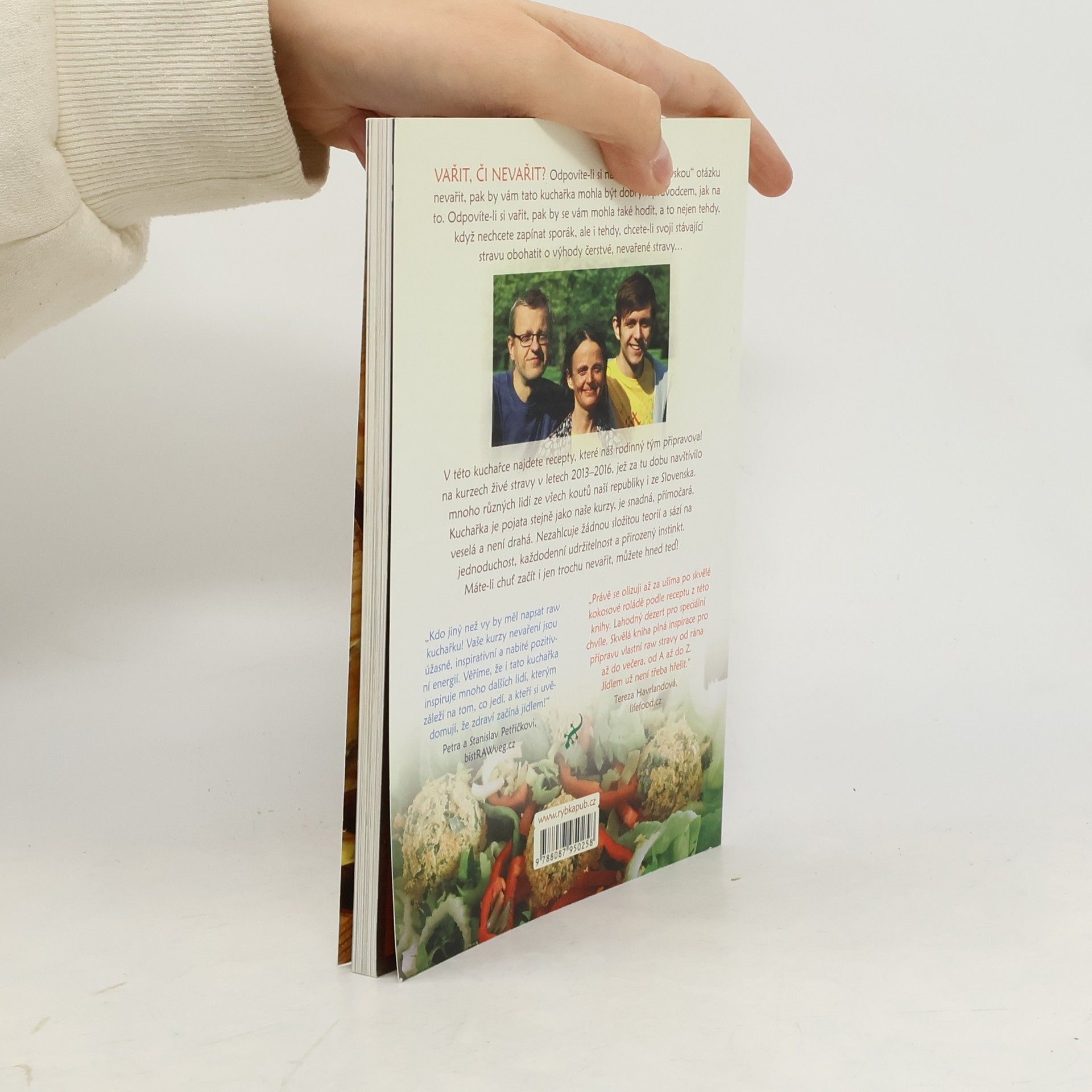 Odpovíte-li si nevařit, pak by vám tato kuchařka mohla být dobrým průvodcem, jak na to. Odpovíte-li si vařit, pak by se vám mohla také hodit, a to nejen tehdy, když nechcete zapínat sporák, ale i tehdy, chcete-li svoji stávající stravu obohatit o výhody čerstvé, nevařené stravy… V kuchařce najdete recepty, které rodinný tým připravoval na kurzech živé stravy v letech 2013–2016 a jež za tu dobu navštívilo mnoho lidí ze všech koutů naší země i ze Slovenska. Kuchařka je pojata stejně jako naše kurzy, je snadná, přímočará, veselá a není drahá. Nezahlcuje žádnou složitou teorií a sází na jednoduchost, každodenní udržitelnost a přirozený instinkt. Máte-li chuť začít i jen trochu nevařit, můžete hned teď!