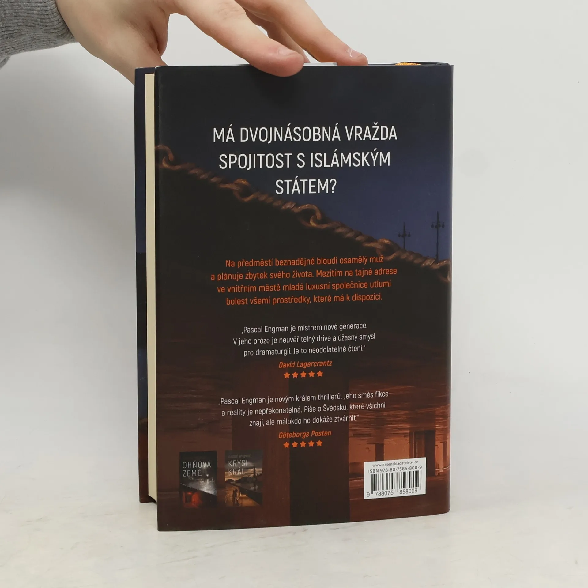 V Gärdetu je nalezen zavražděný policista. Jen kousek od místa činu je potom objevena další oběť, mladá žena neznámé identity. Dvojnásobná vražda zavede policejní inspektorku Vanessu Frankovou do složitého vyšetřování, které se ukáže být osobnější, než si kdy dokázala představit. Když stopy postupně začnou směřovat k ISIS, nabývá případ na ještě větší hrůznosti.Strach společnosti z teroristických zločinů roste zároveň s tím, jak se teroristické sítě zlepšují v tajném fungování. A když se schopnost smutku sbližovat lidi promění v účinnou snahu o pomstu, následky mohou být zničující.Engmanova série o Vanesse Frankové se odehrává v současném Stockholmu a zobrazuje zcela jiné Švédsko – Švédsko s organizovaným zločinem, terorismem a extremismem, které má ke klidné zemi hodně daleko. Je to ta strana Švédska, která se v posledních několika letech objevuje také ve světových zprávách.