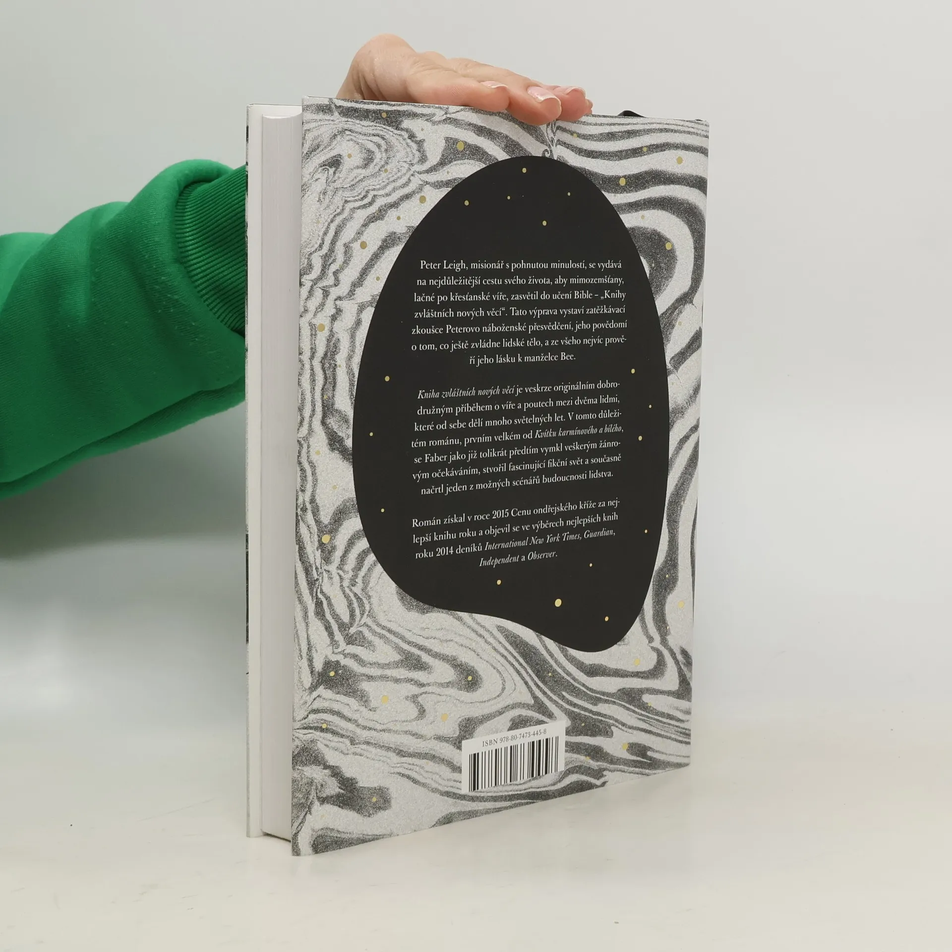 Peter Leigh je misionář s pohnutou minulostí, který se má vydat na nejdůležitější cestu svého života. Opustí tak svou milovanou manželku Beu a po dlouhém letu dorazí na vzdálenou planetu, kde místní obyvatelé lační po učení Bible – jeho „knihy zvláštních nových věcí“. Tato výprava vystaví zatěžkávací zkoušce Peterovo náboženské přesvědčení, jeho povědomí o tom, co ještě zvládne lidské tělo, a ze všeho nejvíc jeho lásku k Bee. Kniha zvláštních nových věcí je veskrze originálním dobrodružným příběhem o víře a poutech mezi dvěma lidmi, které od sebe dělí mnoho světelných let. V tomto velkém románu se M. Faber jako již tolikrát předtím vymkne veškerým žánrovým očekáváním...