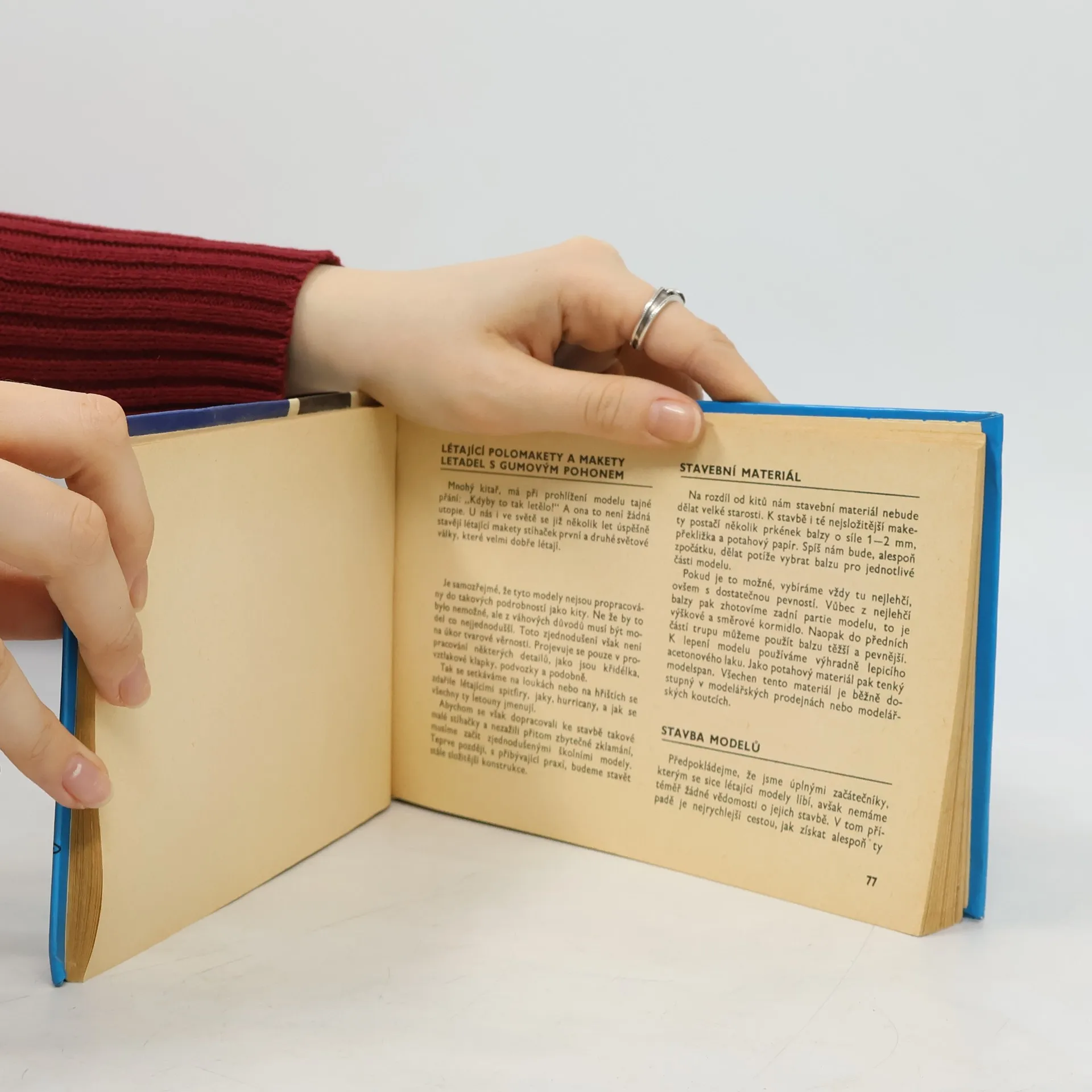 Zájemci o letecké modelářství získají v příručce informace o stavbě jednoduchých papírových modelů a seznámí se s plastikovými stavebnicemi letadel a kosmických lodí, tzv. kity. V dalších kapitolách popisuje výrobu létajících polomaket a maket letadel s gumovým pohonem, konstrukci a stavbu upoutaných modelů a jejich ovládání.