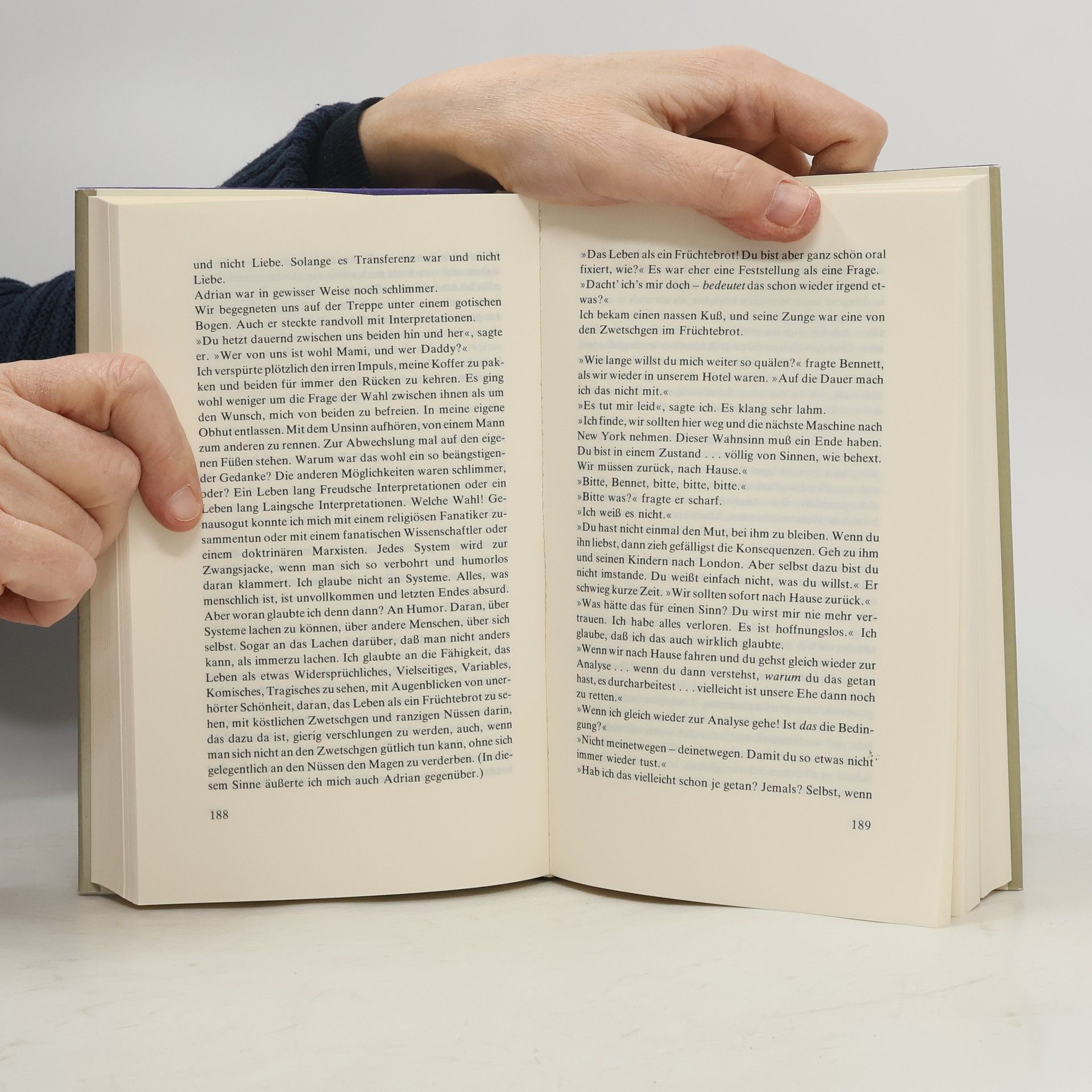 Roman um eine amerikanische Journalistin, die an einem Psychoanalytikerkongress in Europa teilnimmt. Ihr Anliegen: sich selbst und ihre Beziehung zum Sex und zu ihrer Umwelt zu ergründen.