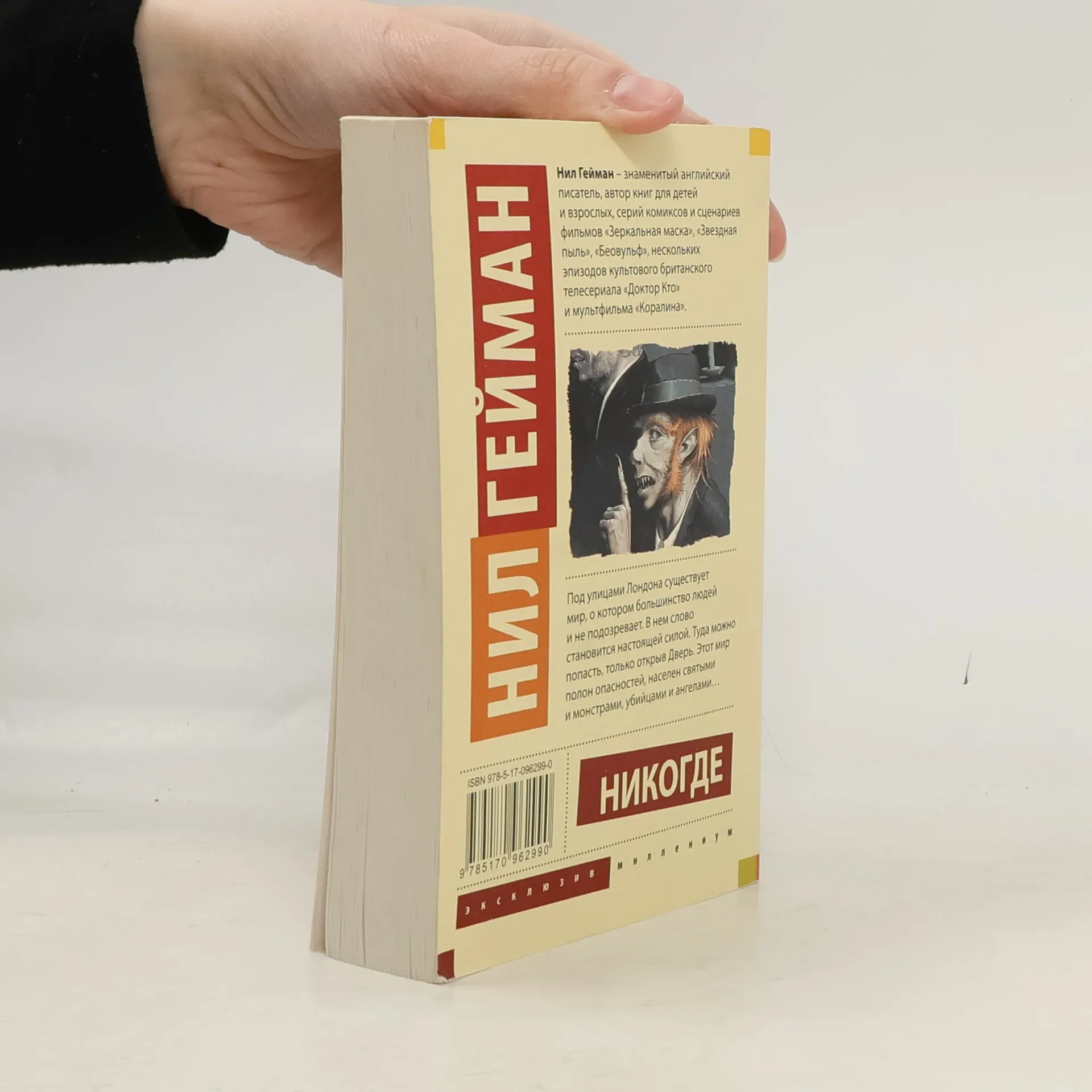 Под Лондоном скрывается место, о котором большинство людей даже не подозревает. Город монстров, святых, убийц и ангелов, рыцарей в сияющих доспехах и бледных девушек в черном бархате. Город тех, кто провалился сквозь трещины жизни. Молодой человек по имени Ричард, совершив акт доброты, оказывается в знакомом и в то же время странном мире под названием Никогде…