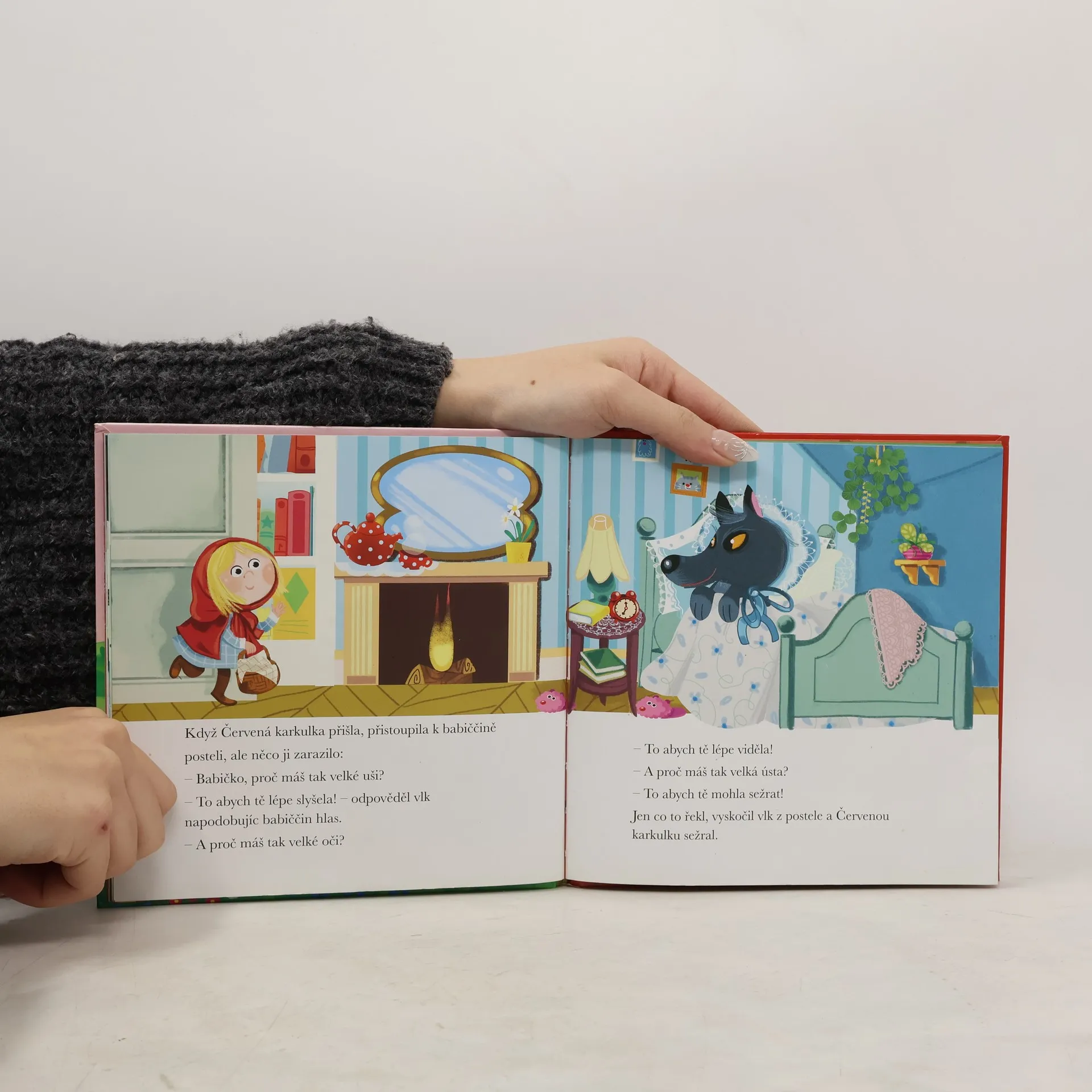 Červená karkulka, Červená karkulka, s touto pěknou, jasně červenou pelerínou... Cestou za nemocnou babičkou, které neseš dobroty k jídlu, nesmíš vkročit do lesa: potkáš tam vlka!