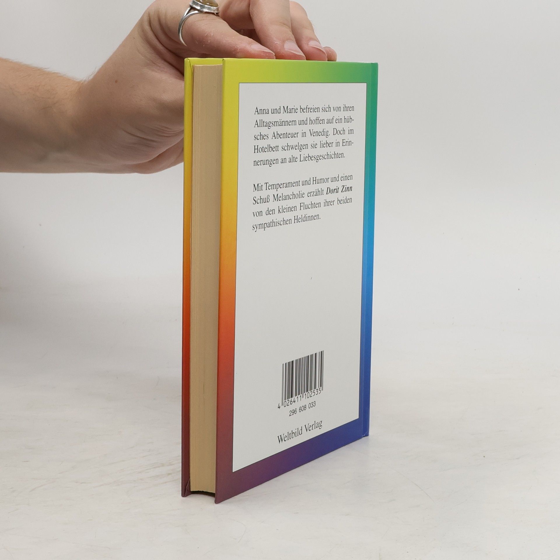 Anna und Marie befreien sich von ihren Alltagsmännern und hoffen auf ein hübsches Abenteuer in Venedig. Doch im Hotelbett schwelgen sie lieber in Erinnerungen an alte Liebesgeschichten.§Mit Temperament und Humor und einem Schuß Melancholie erzählt Dorit Zinn von den kleinen Fluchten ihrer beiden sympathischen Heldinnen.